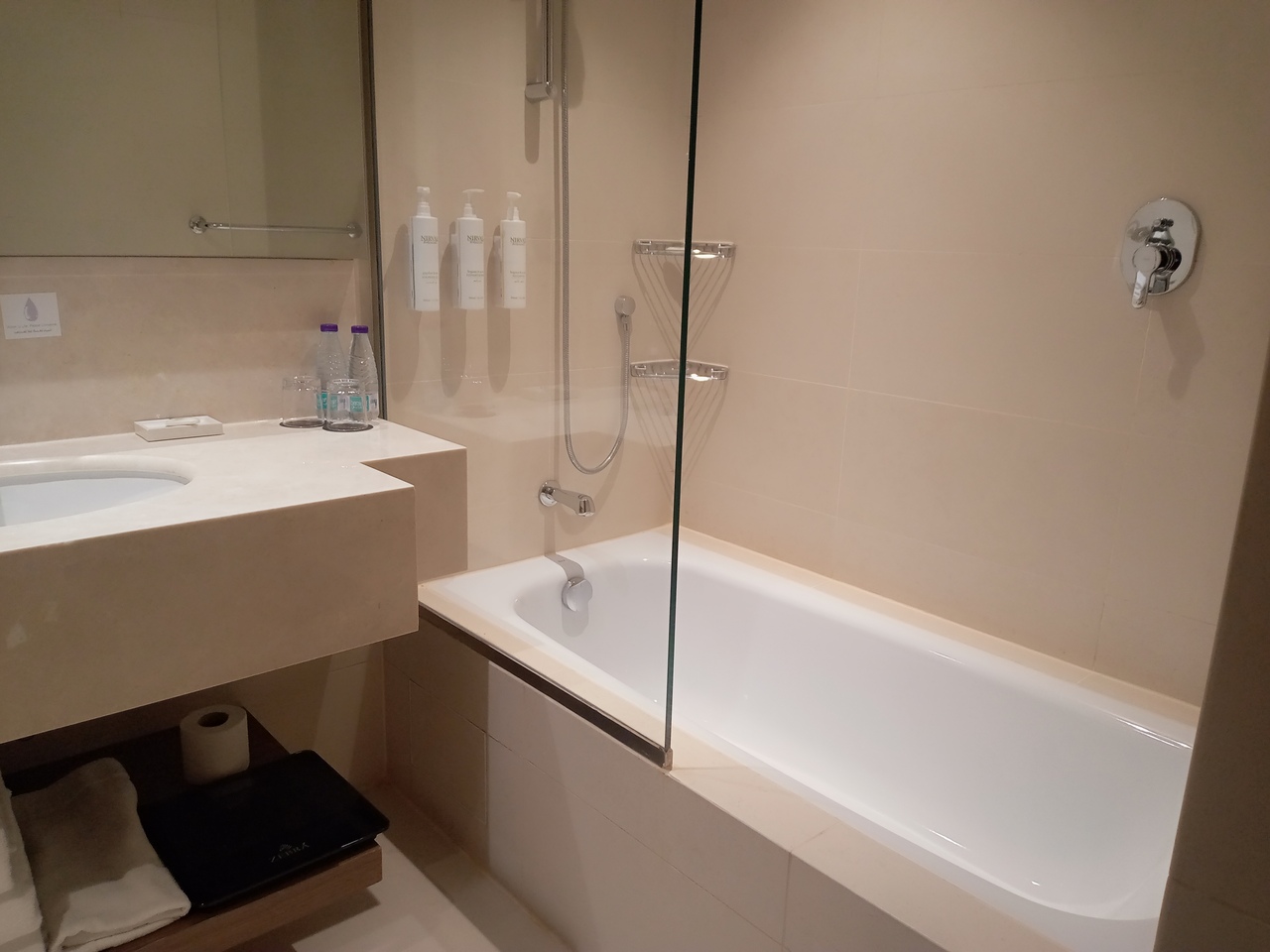 バスルームに体重計がありましたが、海外ホテルでありがちな、電池切れ。体重計の意味。