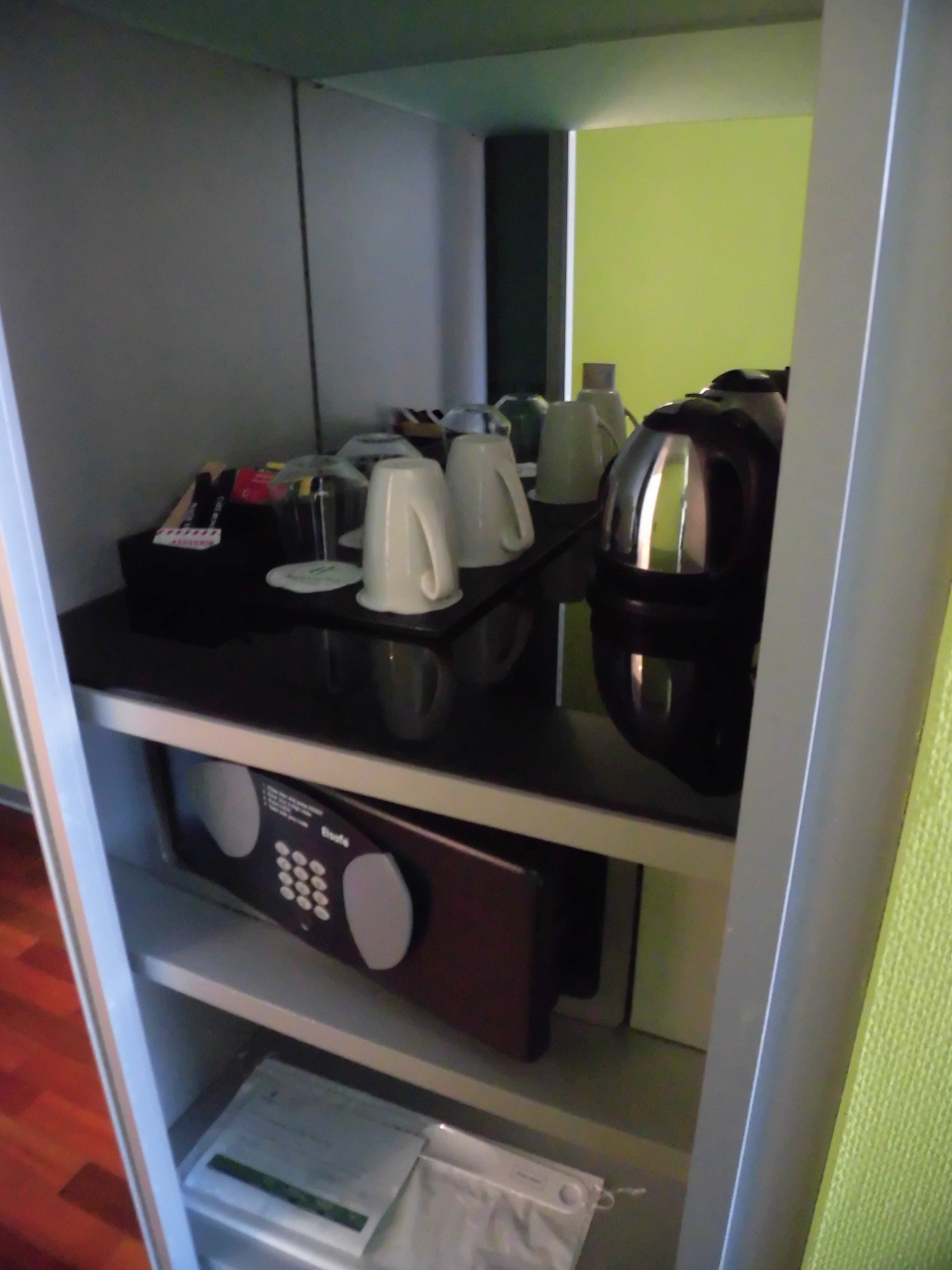 ヨーロッパのホテルには室内の備品があまりないところも多いですが、このホテルには湯沸かしポット、カップ、インスタントコーヒーなどもあり、快適に過ごせました。