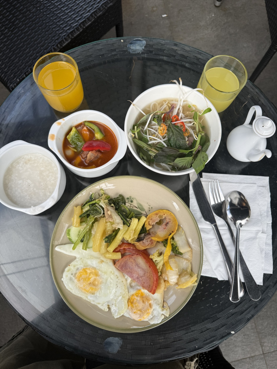 朝食は7時からと書いてあったので7時に会場に行ったら、既に中国人と思われる団体が食事した後で、全テーブルに食事した食器が乗ったままで座る場所が無い。卵料理は、以前はその場で焼いてくれましたが、今回は作り置きのオーバーイージーのみ。