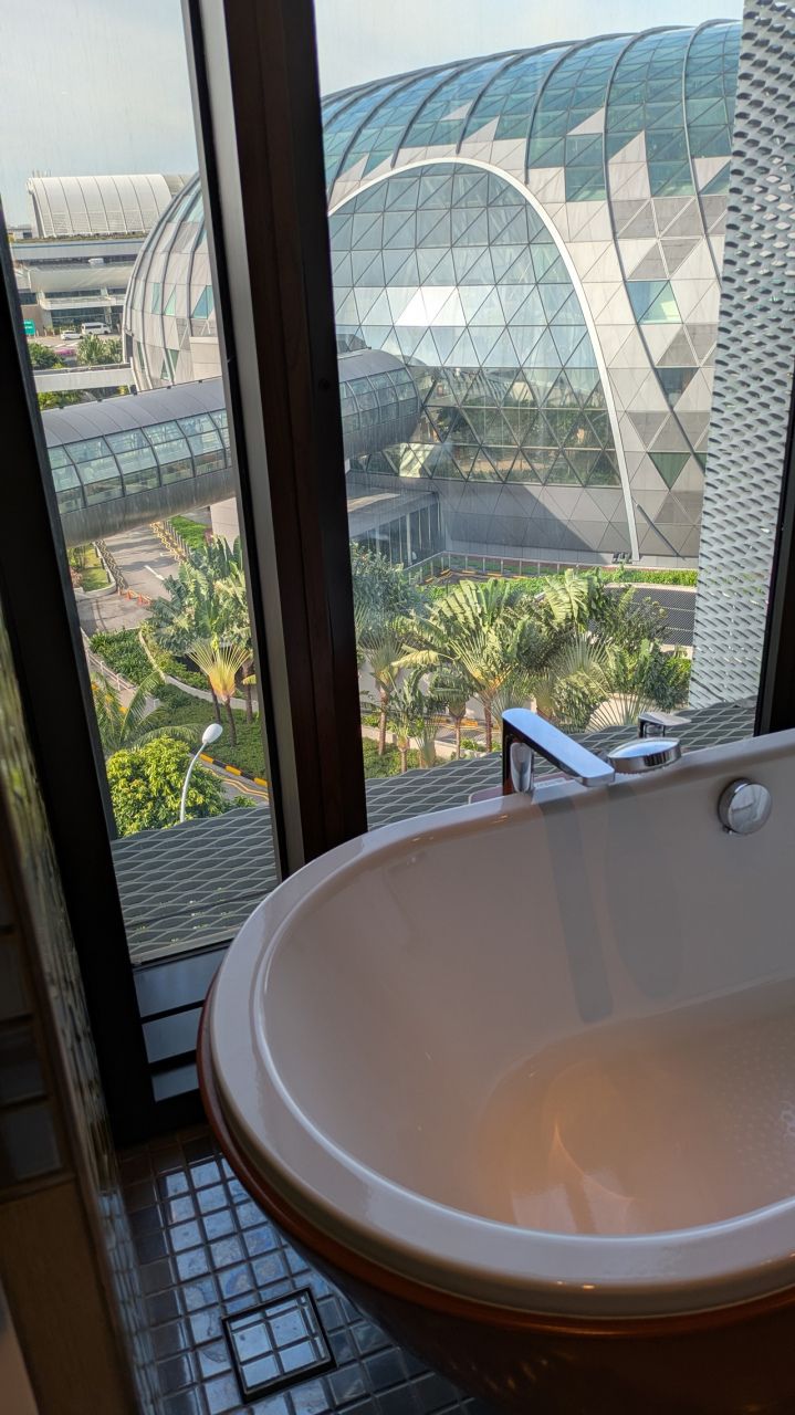 別館(JEWEL WING)7Fの部屋で、窓側に設置されたお風呂の窓からJEWELのドームが見えました。レセプションから遠くて蒸し暑い中を歩くのは大変でしたけど、チャンギのランドマークを何度も見られて良かったです。