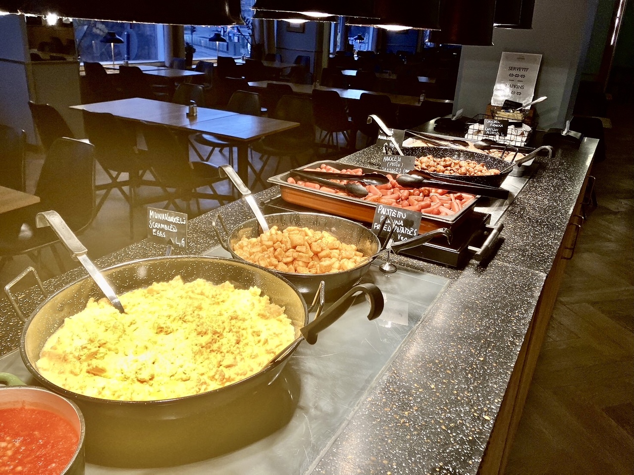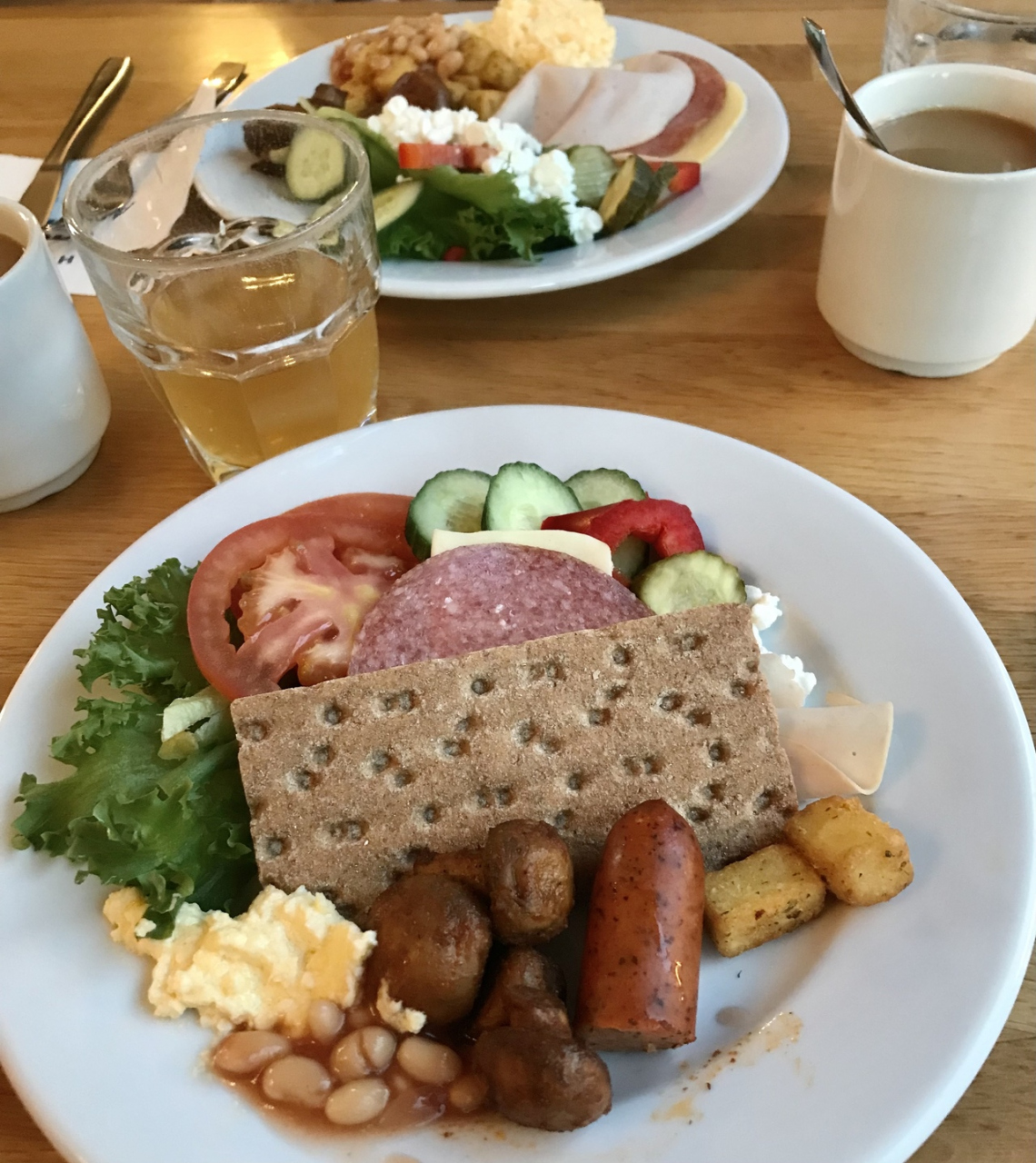 朝食は月~金は6:30~10:00、土・日・祝は7:30~11:00。ベリーやスモークサーモンは無かったけど、フライドポテト、焼きマッシュルーム、豆のトマト煮、ソーセージなどの温かい物もあり、どれも美味しかったです。『kinkku ham』という、ももハムがしっとりしてて味も良く好きでした。