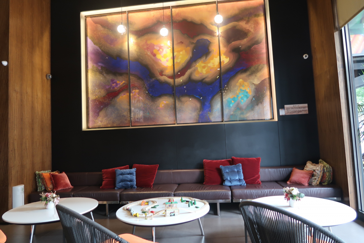 客室は自然光がしっかり入る明るい雰囲気で、小上がりが設置されていたり、カウンターデスクのような長細い大きな作業テーブルがあったり、日本のホテルにはないデザインで、おしゃれな空間でした。