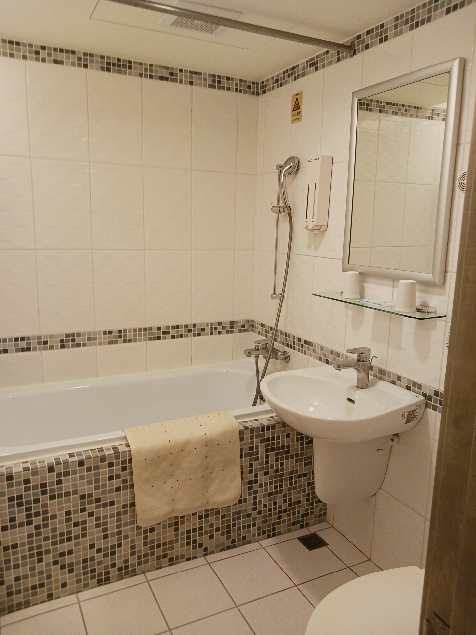 メトロ行天宮駅から歩いて5分位かな。下町の中にあります。古い小さなホテルです。浴槽がありますがシャワーで済ませます。湯量は問題ありませんでした。朝食は2日間とも同じです。料理は少ないし。白ご飯が無いので味噌汁も無い。仲居さんもGパンの爺さまです。JTBの旅なのでもう少しランクアップして欲しいですね。