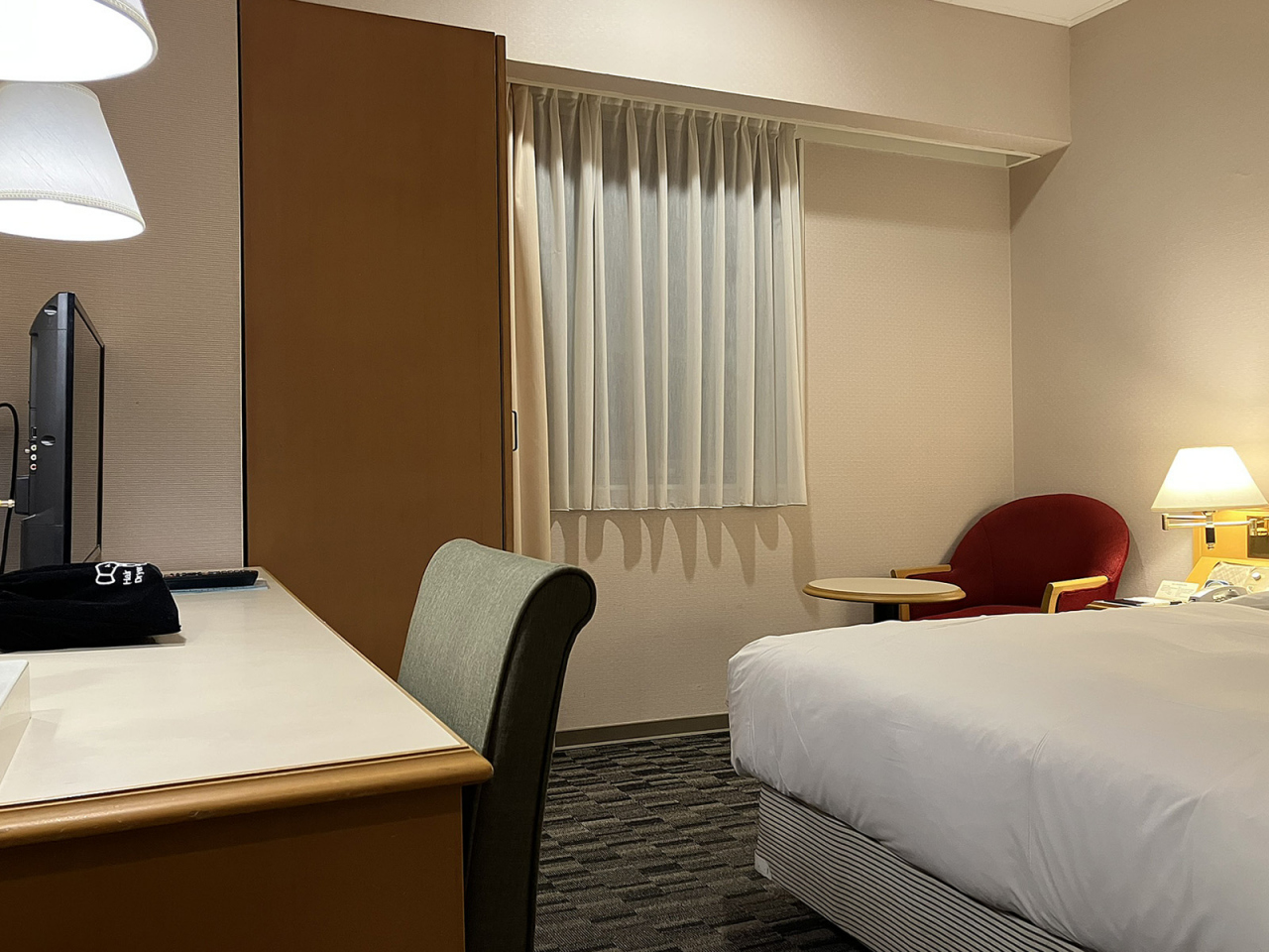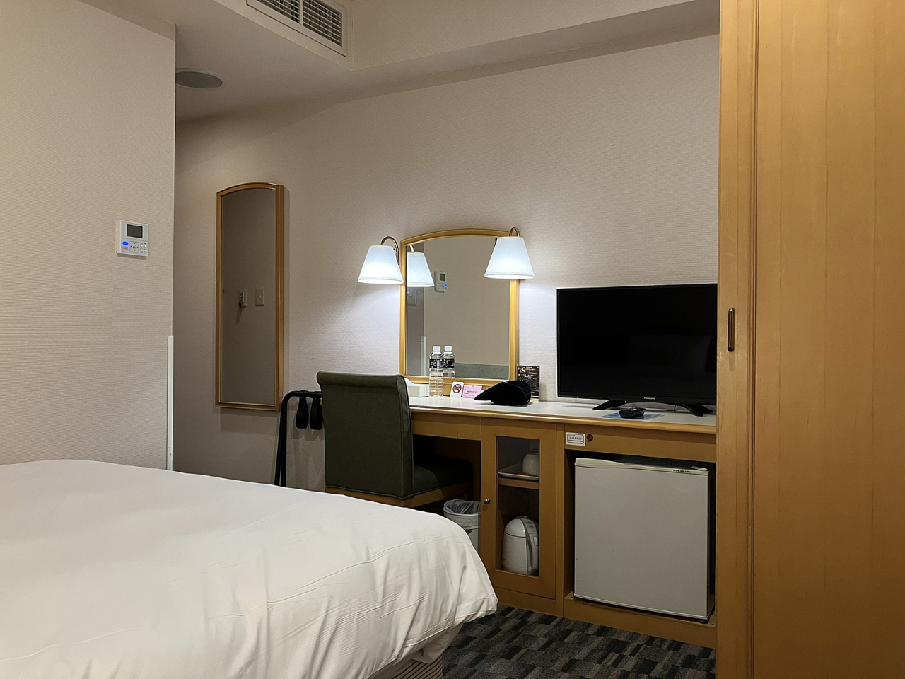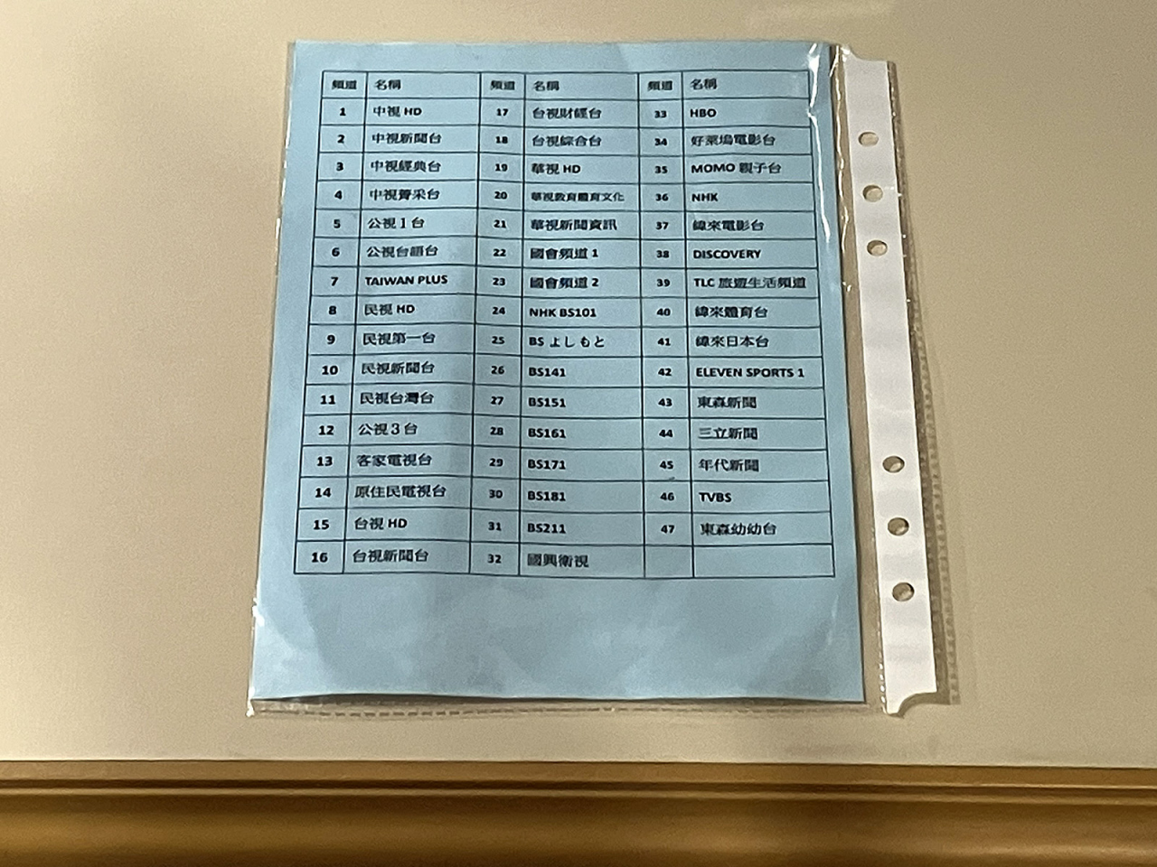 1996年開業、台北のみならず、台湾での日系バジェットホテルの草分けのような存在だと思います。私も知ってはいましたが、利用するのは初めてです。台北到着は夜間になりましたが、最寄り駅のMRT民権西路からさして遠くなく、立地も大通り沿いのはずで心配していなかったのですが、ホテルの照明も暗くサインも見えなかったので、少しだけ不安になりました。ただ1階にあった大戸屋のショーウィンドウが助けになりました(笑)。ロビーでは日本語でのお出迎え、金属製のキー、客室階エレベーターホールのズボンプレッサーだけでなく、客室の広さや造り、スイッチ式の冷蔵庫など、まさに90年代の日本そのものでした。またテレビチャンネルもNHK・日本のキー局が視聴できるので、外国に不慣れな人にも不自由なく利用できそうです。