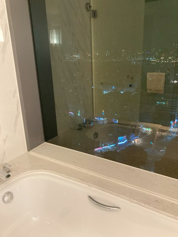 また28階のスウィートルームからの眺望は抜群で、バスルームからの夜景を堪能しました。