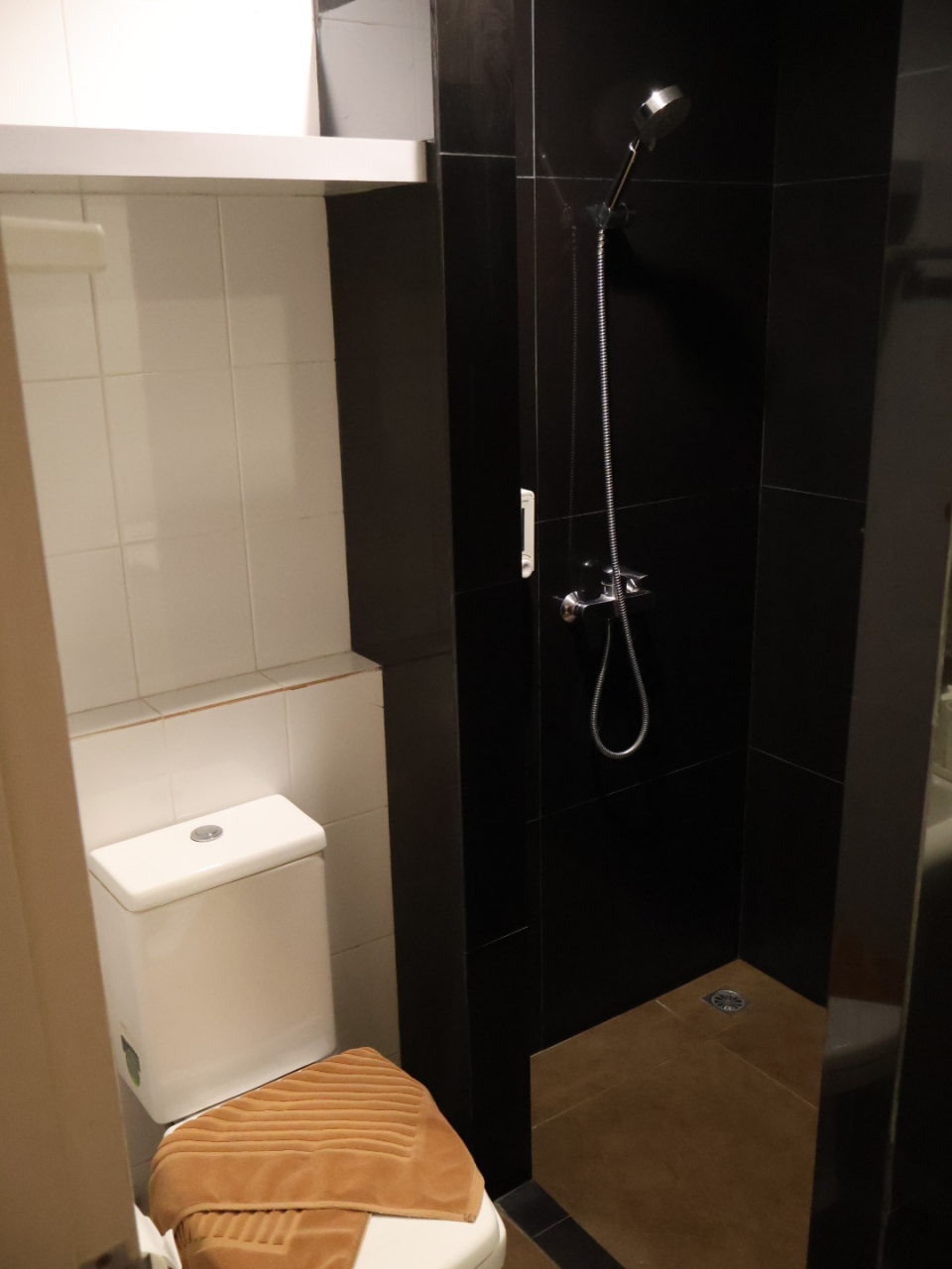 ②シャワーブースとトイレ洗面ブースの境のつくりが甘く、シャワーを浴びるとトイレ洗面ブースまで水浸しになってしまう点で、段差やカーテン、扉の設置が必要かもしれません。
