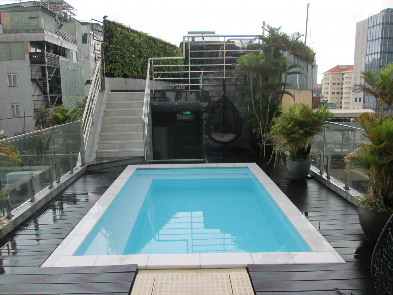 ローズランド スイート ホテル&スパの11階上にプールがありました。ローズランドチェーンのなかでプールが付いているのはここだけだと思います。泳ぐと言うよりはつかるようなプールでした。日当たりが良かったので、レタントン通り界隈の景色を眺めながら日光浴ができました。