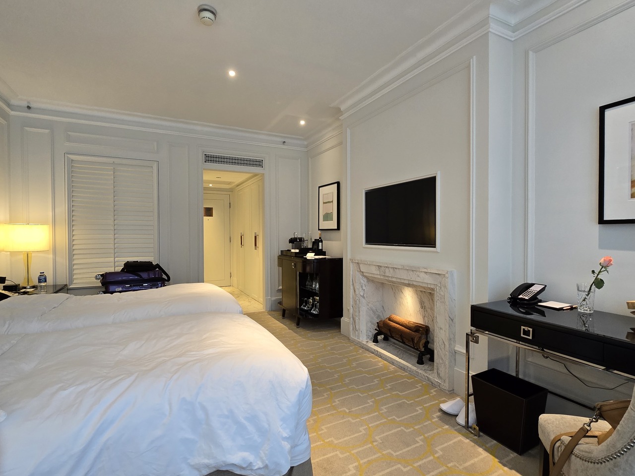 クラブフロアで宿泊した。クラブラウンジは4つの空間(恐らく客室)を繋げているが、壁紙やシャンデリア等内装は英国そのもの。クラブラウンジの客は西洋人が多く、ホテルスタッフも男性女性とも丁寧な英語を話し、英国に滞在しているようだ。英国婦人がグループでトランプに講じていた。アフタヌーンティーはトレイには載っていないが、コーヒーはなく日替わりティーがあった。朝食は1階レストランでも食べられ、レストランと比べると種類は少ないが落ち着いており、シリアル類は充実している。部屋は白い英国風内装、バスタブのほかにシャワーブースもあり、快適だった。
