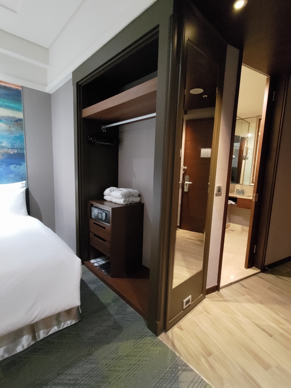 MRTの駅からは少々距離があり、便利とは言い難いですが、その分部屋のつくりはゆったりしていて広く、しかも部屋の設備はかなり最新式です。ウォシュレットはちょっとちゃっちいですが、充分ウォシュレットですし、天井も高く広々とした室内は快適です。テレビはユーチューブやネットフリックスが接続でき、もちろんNHKや日本の番組の専門チャンネルも見ることができます。廊下も広いので、せこせこした感じがありません。スタッフも皆親切で応対が気持ちいいです。朝食も広々と置いてあるので、見た目は寂しい感じがほんのちょっとだけしますが、実際は種類豊富で、目の前で作ってくれる出来立てのオムレツなど、なんだかんだけっこう食べられます。サウナは日本式で、日本と変わりなく楽しめます。