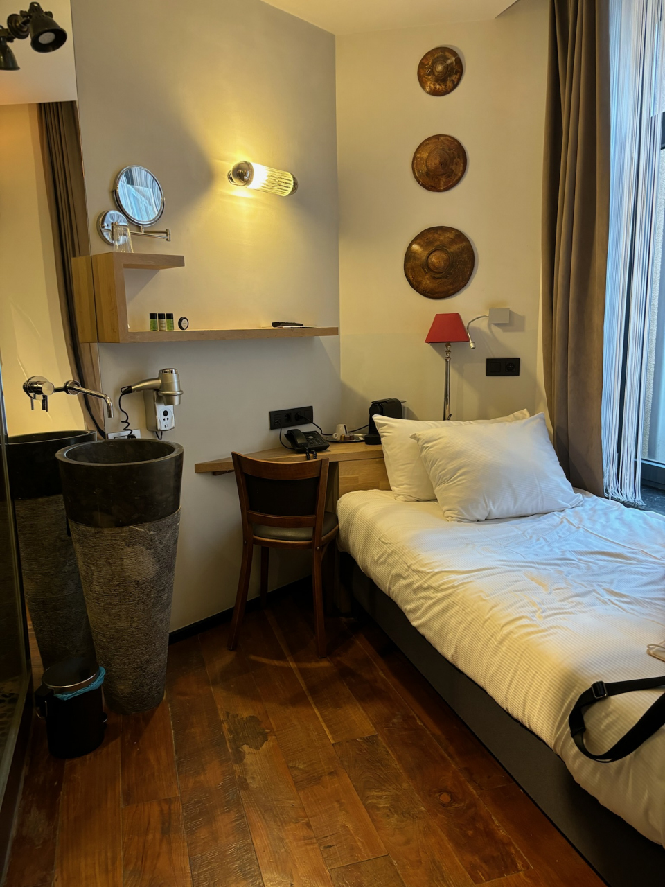 観光の中心地であるグランプラスから夜でも歩いて帰れる立地なので、部屋が狭いのは仕方ないと思いました。