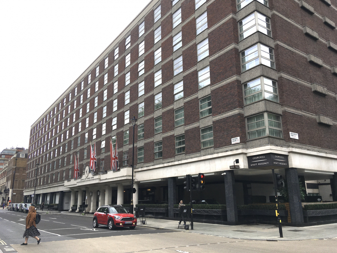 このホテルは、ボンドストリート駅のそば、セルフリッジなどの百貨店のすぐ裏手にあり、ホテル前には公園の緑があって環境も良かった。ホテルの周りは静かだったが、少し歩いて大通りに出ると賑わっていた。室料の割に部屋は狭く、照明が暗くテーブルも少ないので仕事がしづらかった。ただトイレにはウォシュレットが装備されていたことには驚きと感動。