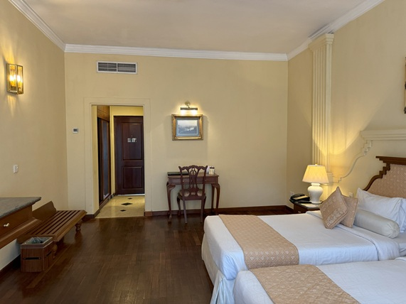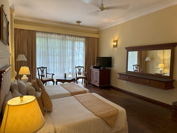ツアーの3ヶ所目のホテルです。部屋は広かったです。バスダブもそれほど大きくはないけどありました。ペラヘラ祭りの日だったのでフロントが混雑していました。チェックインの順番待ちをしていたらジュースのサービスがありました。スリランカのホテルはスタッフがフレンドリーでした。