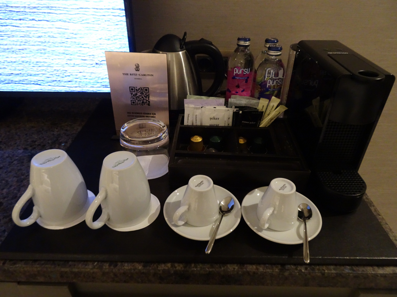 ドリップ式のコーヒーメーカーにオリジナルチョコのサービス、窓から見えるイスタンブールの眺望、どれをとってもうれしいサービス、大満足の滞在でした。