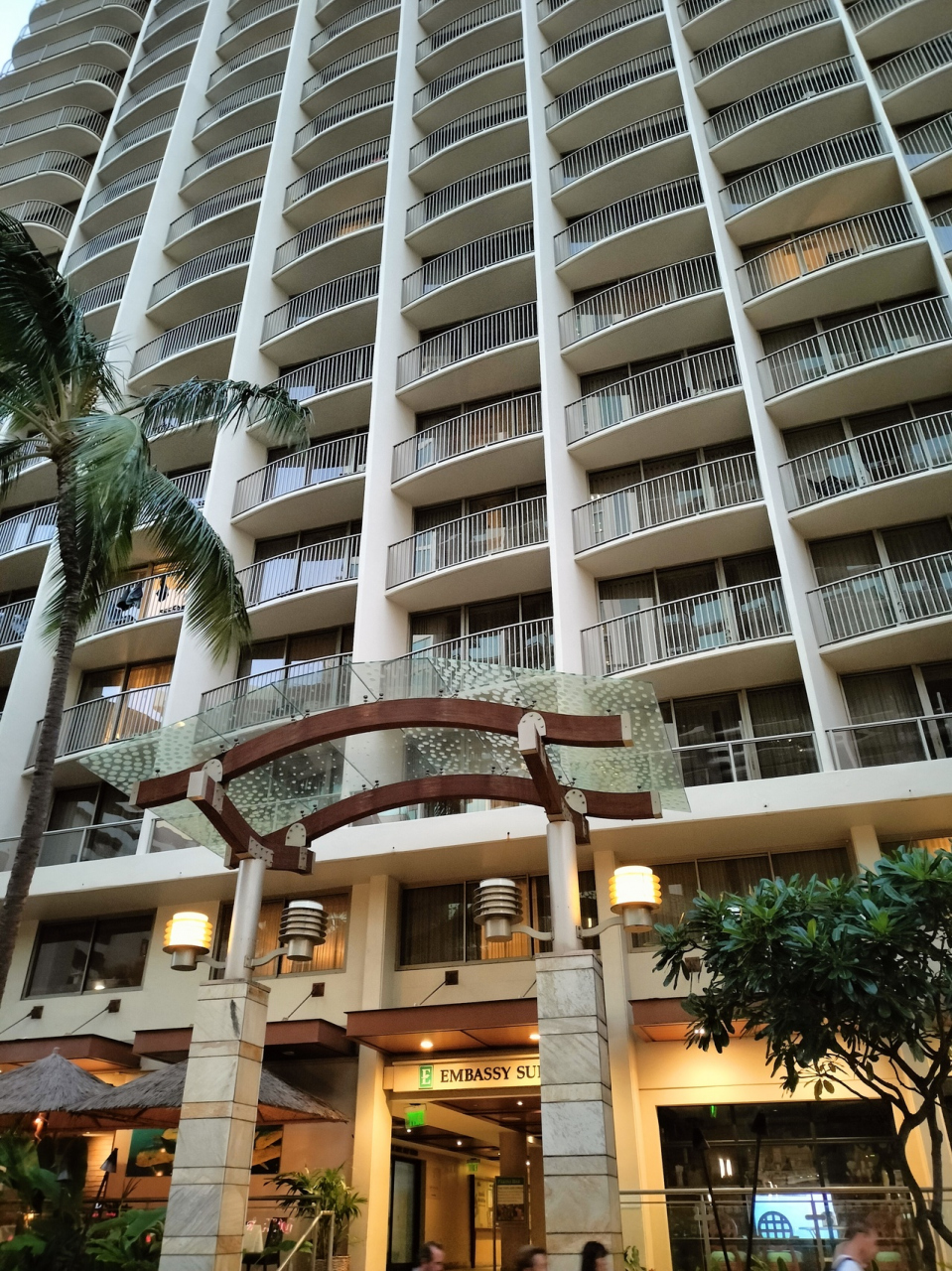こちらのエンバシー スイーツ バイ ヒルトン ワイキキ ビーチ ウォークホテルは、決して安くはない…むしろ個人的は高いですが、オン・ザ・ビーチの名門ホテル郡よりは、少しリーズナブルで、しかもロケーションはけっこう良いです。