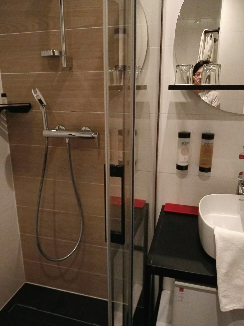 ブダペストの古い街並みの中にあり、外観は歴史ある建物に見えるが、中は現代的なホテル。ただ2階で遮音性があまり良くなかったせいか、夜中に外の喧騒が聞こえてきた。バスタブはない部屋だったが、冷蔵庫と無料のお水あり。電話がタブレットだった。
