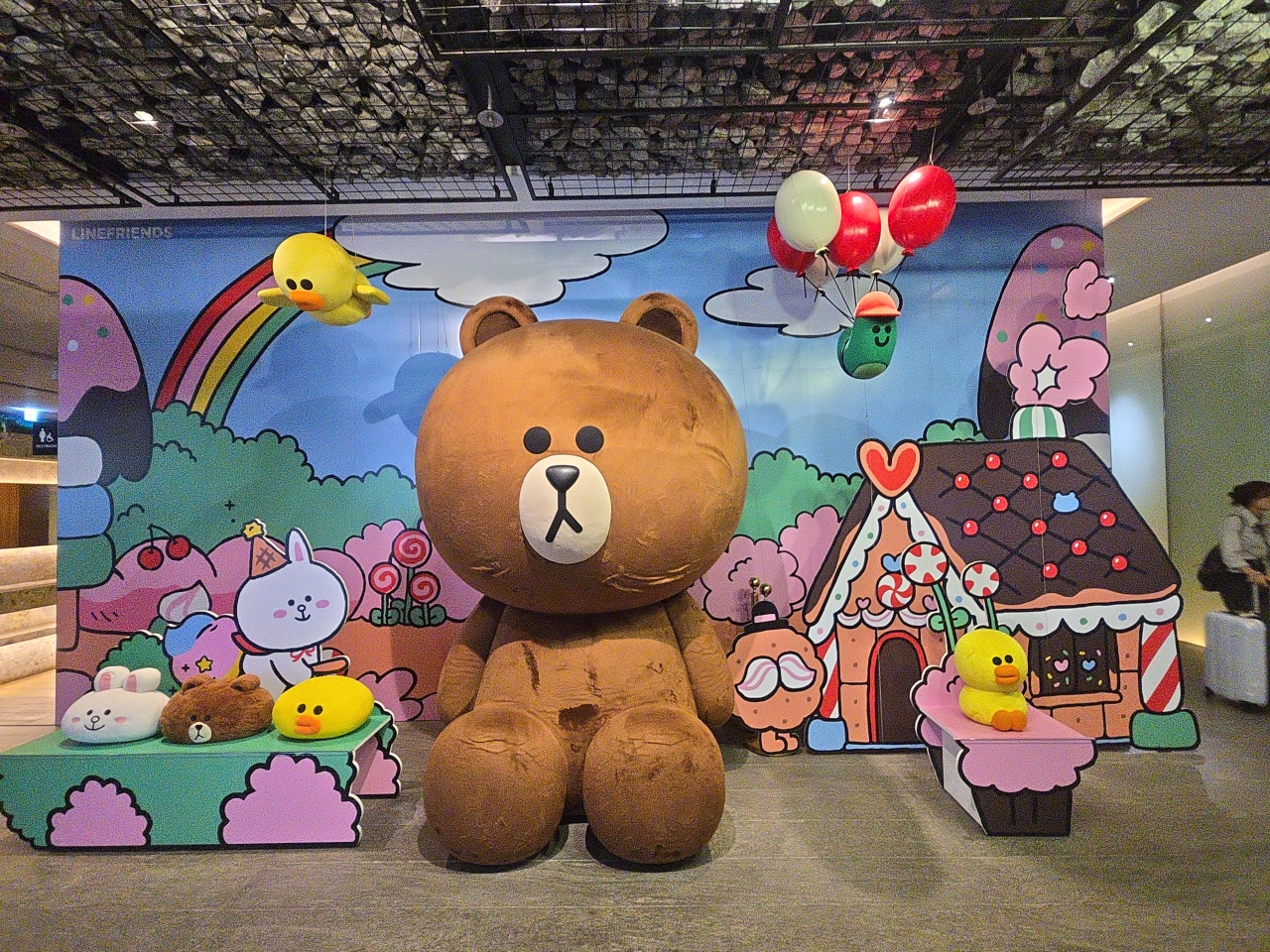 市内のラインフレンズスクエアでは、ブラウンなどのキャラクターグッズが縮小していく中、このホテルはブラウンたちの愛で溢れている。