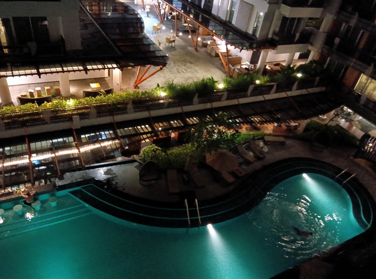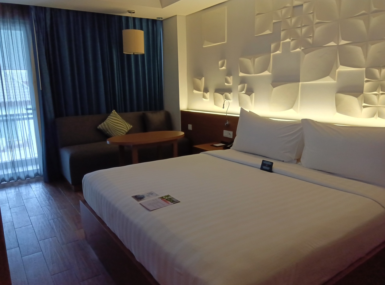 【部屋】予約はシティービューでプールビューの最上階にアップグレード。スッキリしていますが簡素過ぎず、水もたっぷり。スリッパは薄めですがビーサンでなく普通のもの。