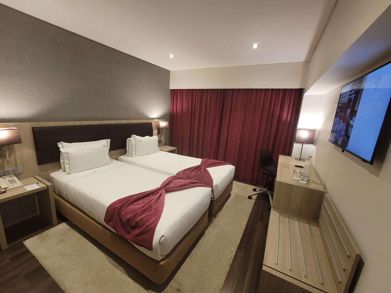 Europa Mundo 催行のランドクルーズツアーで利用しました。リスボン中心部からは離れているため、市内観光にはやや不便ですが、地下鉄のカンポ・ペケーノ駅まで5~6分なので、乗り換えを含めて20~25分程度です。逆に、空港には近く、タクシーで10分程度で行けます(ホテルに呼んできてもらうこともできますが、南に歩いて3分位のところのホリデイインの前にはタクシーが常駐しています。)。カンポ・ペケーノ周辺には、レストランやスーパーマーケットも多く、イスラム風建築のカンポ・ペケーノ闘牛場も近くです。ホテルの部屋は清潔で、スーツケースを2つ広げられる広さ。瓶タイプのミネラルウォーターのサービスあり。バスタブがあり、シャワーの水圧、使い易さも十分でした。ビュッフェ形式の朝食は、イングリッシュスタイルでした。