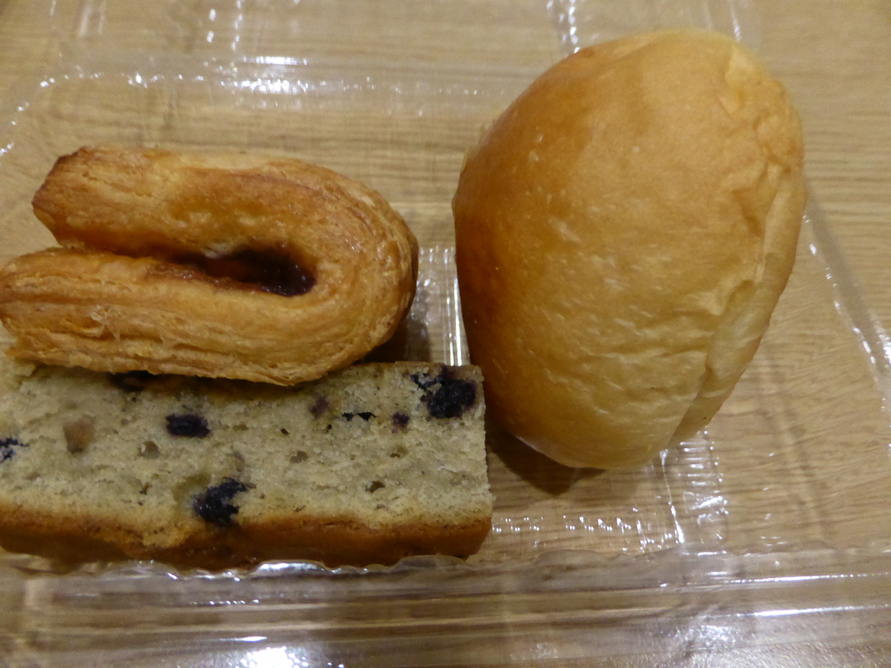 夜10時になると、軽食サービスがあり、袋に3つ入った菓子パンをもらうことができた。どれもけっこうおいしかったので、おなかに余裕があればもらうといいと思う。