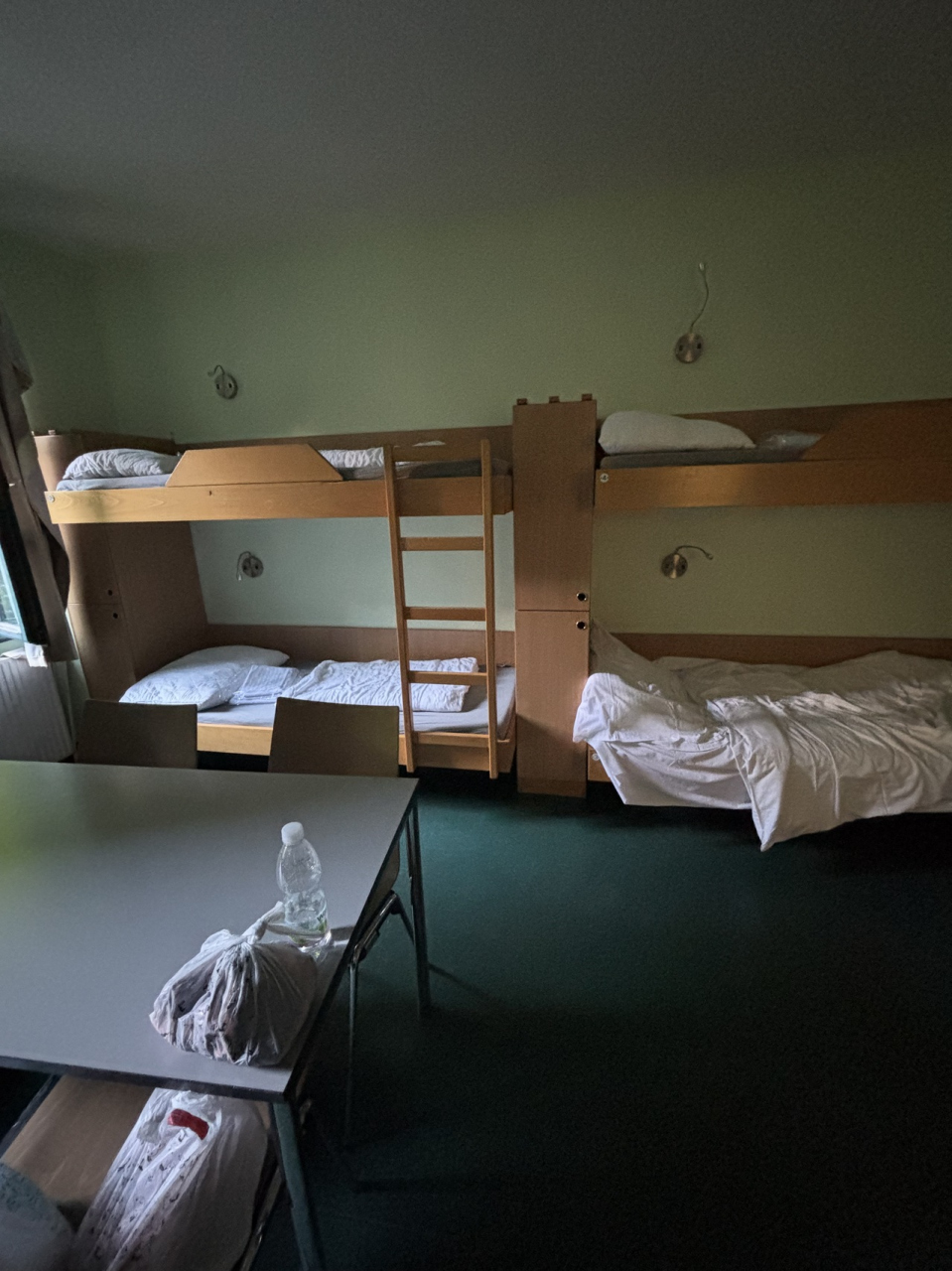 料金はヨーロッパはホテル代が高いので、ここはリーズナブルかなと。チェックイン時間前に荷物無料で預かってくれます。部屋の外に男女別バスルーム、トイレがいくつかあります。ベッドにカーテンはありませんが、みなさん静かに過ごされてました。中庭、気持ちがいいです