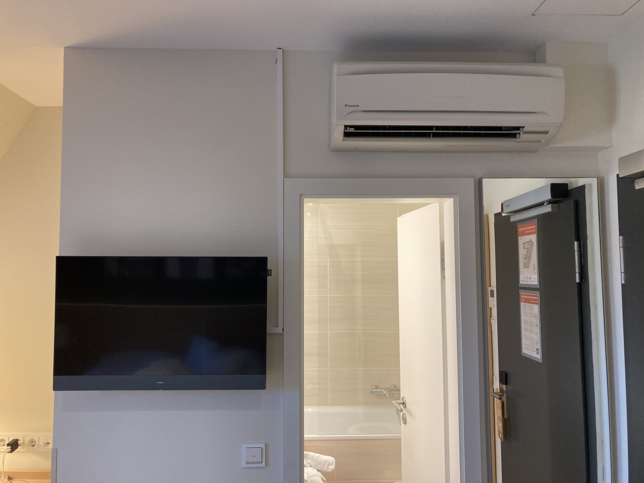 駅前のホテルで、ニュルンベルク駅の地下街から出てすぐのところにあります。エアコンもDAIKINが付いていました。部屋も十分な広さで清潔です。バスタブもありました。朝食がとても美味しかったです。旧市街の入り口にあり、観光にも便利です。
