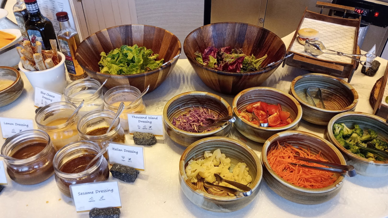 朝食ビュッフェは、毎日少しずつメニューが変化しています。またサラダやフルーツ、ヨーグルトも充実しています。和食もあります。