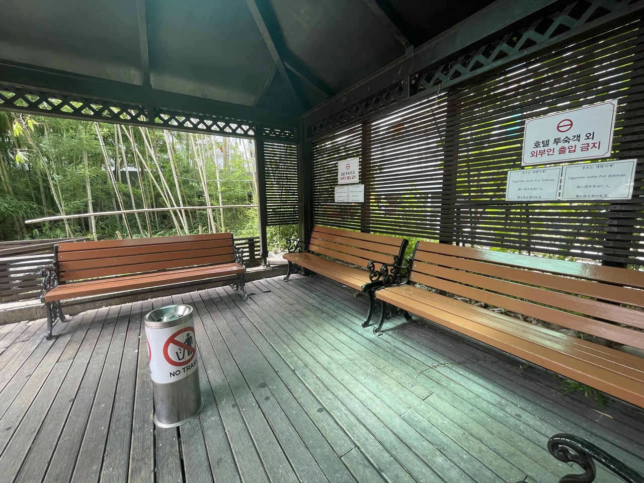 喫煙所:ホテル入口の手前に東屋(写真参照)みたいな所で吸えます