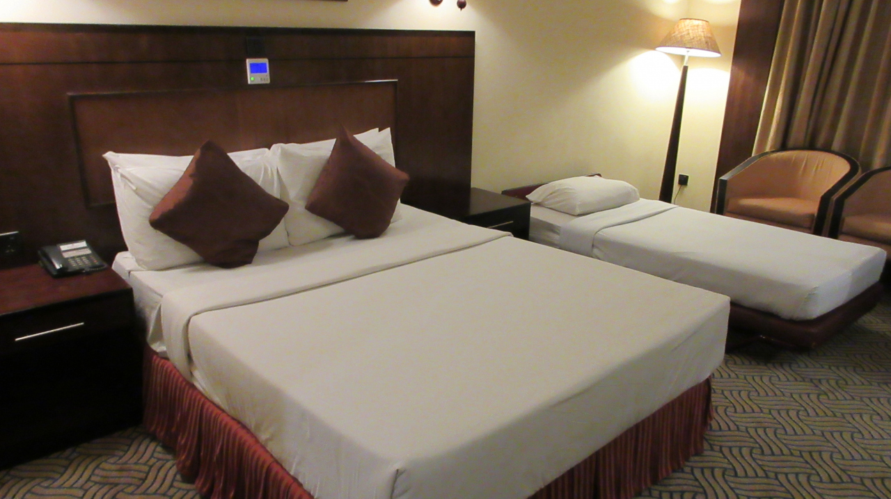 アサインされたのは、1階(英国植民地だったので欧州式。日本なら2階) の1 Queen Bed Room (25㎡)。実際はWide Single(150cm)が1台。サロンスペースには椅子2脚とローテーブルがあるのだが、エキストラベッドがセットされたままになっているので、狭い。夜遅くのチェックインでクレームを入れるのも面倒だったので、そのままにしたが、減点もの。