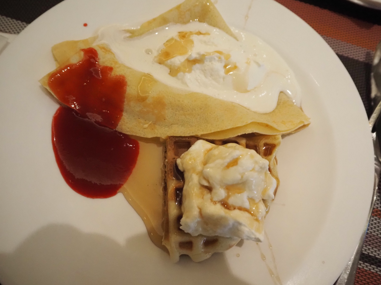 マカオの市街地からはやや遠く、徒歩15分程度かかるので、ロケーションはあまりよくありません。ただ、移動はタクシーなので、不自由しませんでした。部屋は広くて快適、マカオの市街地を部屋から臨むことができるのもうれしいです。朝食は一押しです。オムレツはもとより、パンケーキやワッフル、クレープまでエッグステーションで焼いてくれ、あつあつ、焼きたての状態で食べられるのがうれしいですね。しかも、本物の生クリームのトッピングができるホテルの朝食ははじめてです。朝食を食べるだけでも十分泊まる価値ありです。