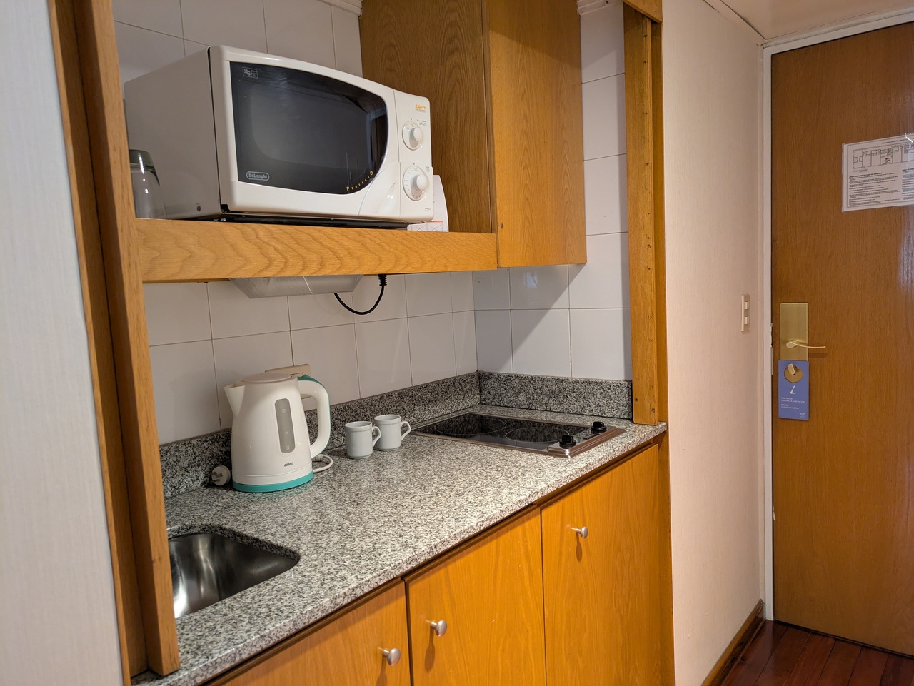 ホテルの部屋は簡易キッチンと電子レンジ付でした。