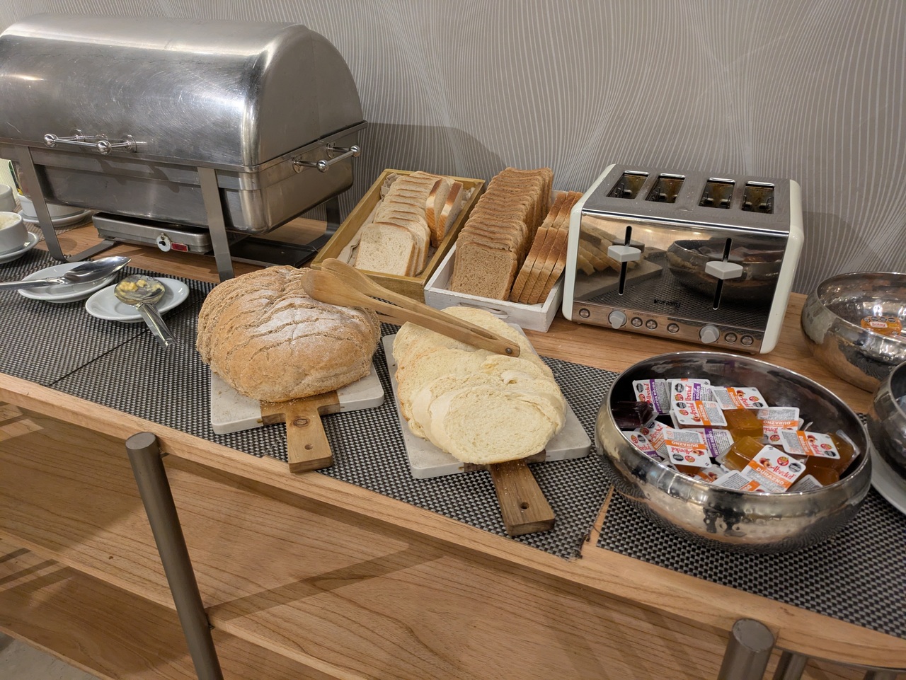 Agodaから朝食付きで予約したのですが、ホテル側は朝食無しとなっていました。(Agoda側の問題だと思います。)朝食はパンの種類が豊富でした。