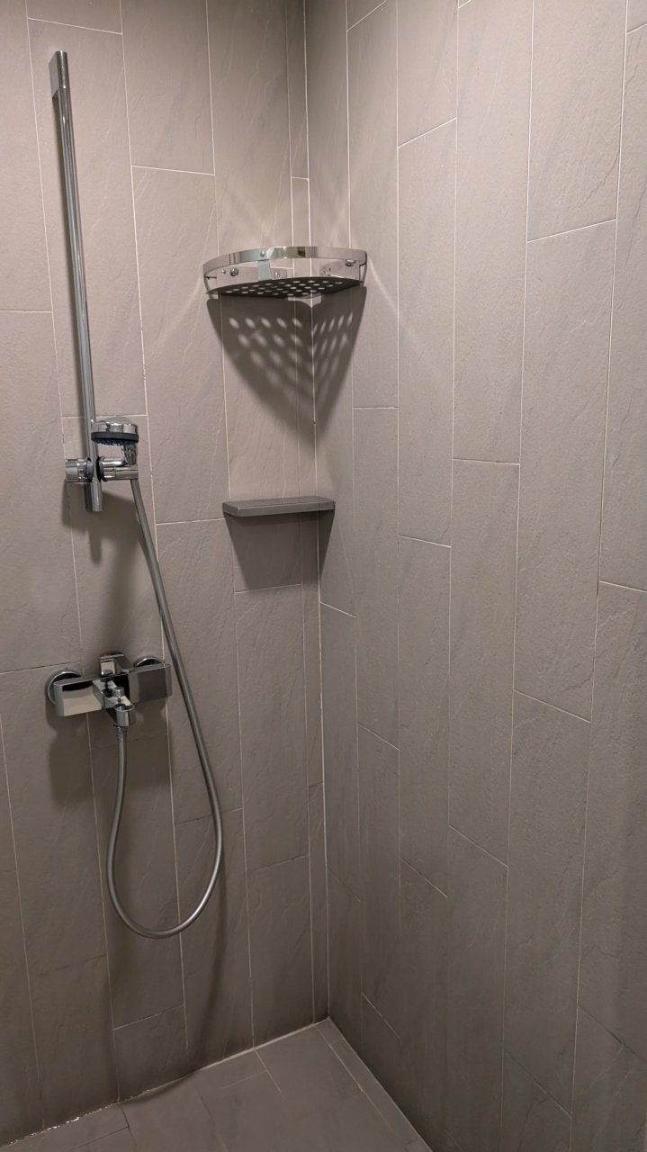 綺麗で広くて総じて快適でしたが、トイレとシャワールームの扉が1枚(スライドドア)でシャワー側に閉めるとトイレ側が開きっぱなしになるという謎の造りだったのとスライドドアが固定されず開いてしまうのがマイナスポイント。