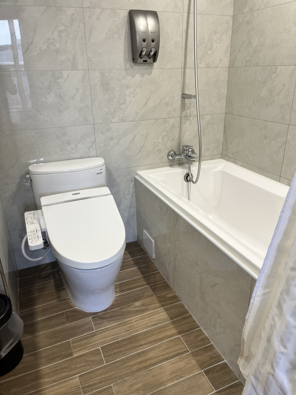 窓が大きく、明るい部屋。ただし光が入るので部屋はエアコンが若干効きづらい(そのためなのか扇風機も置いてあった)。また、設備は若干古いがトイレはウオシュレット付(ただし、紙を流すのはNGらしい)、バスタブも日本人に嬉しい深さ。