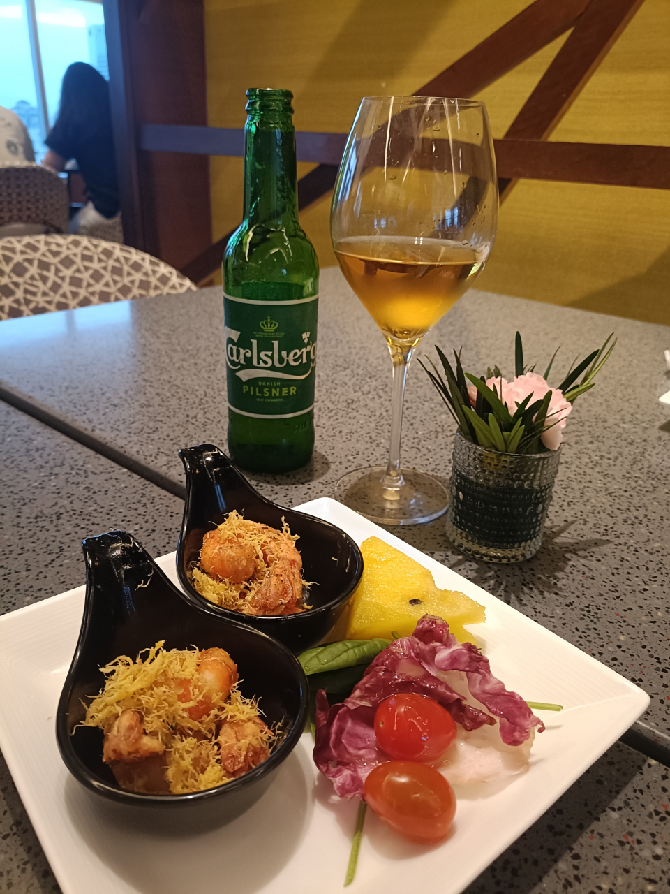 夜は軽食とエビの揚げものがおいしかったです。