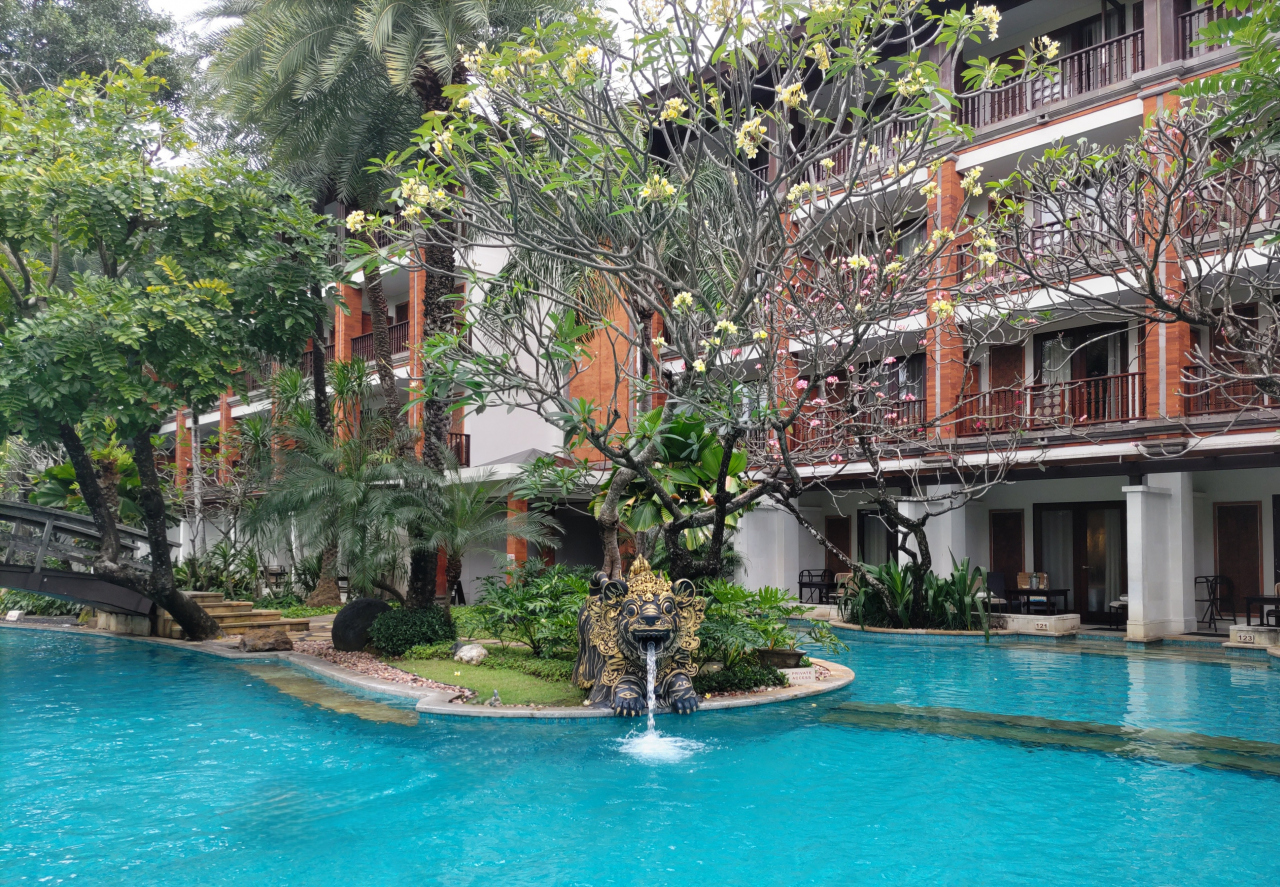 ホテルのプールは3か所あり、大人専用のインフィニティプールの他、子供も大丈夫な深さのラグーンプールと、広いメインプールがあります。