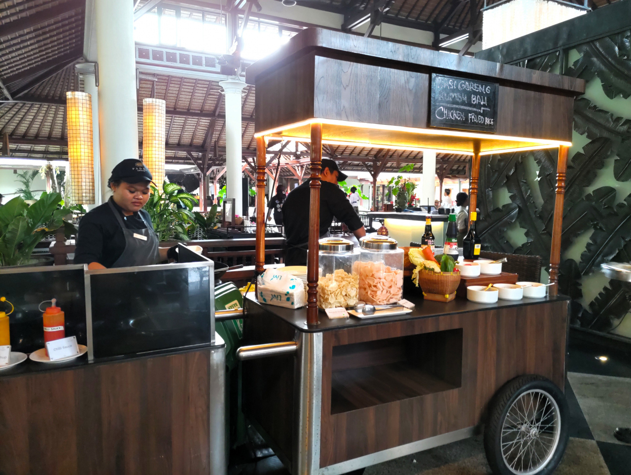 クラブアクセスの部屋カテゴリーに宿泊している場合、メインダイニングのドンビュー利用でも、渡り廊下でつながっている冷房の効いた別の建物で食事を頂けます。また、クラブラウンジでも朝食を頂くことができ、その日の気分で自由に選べます。