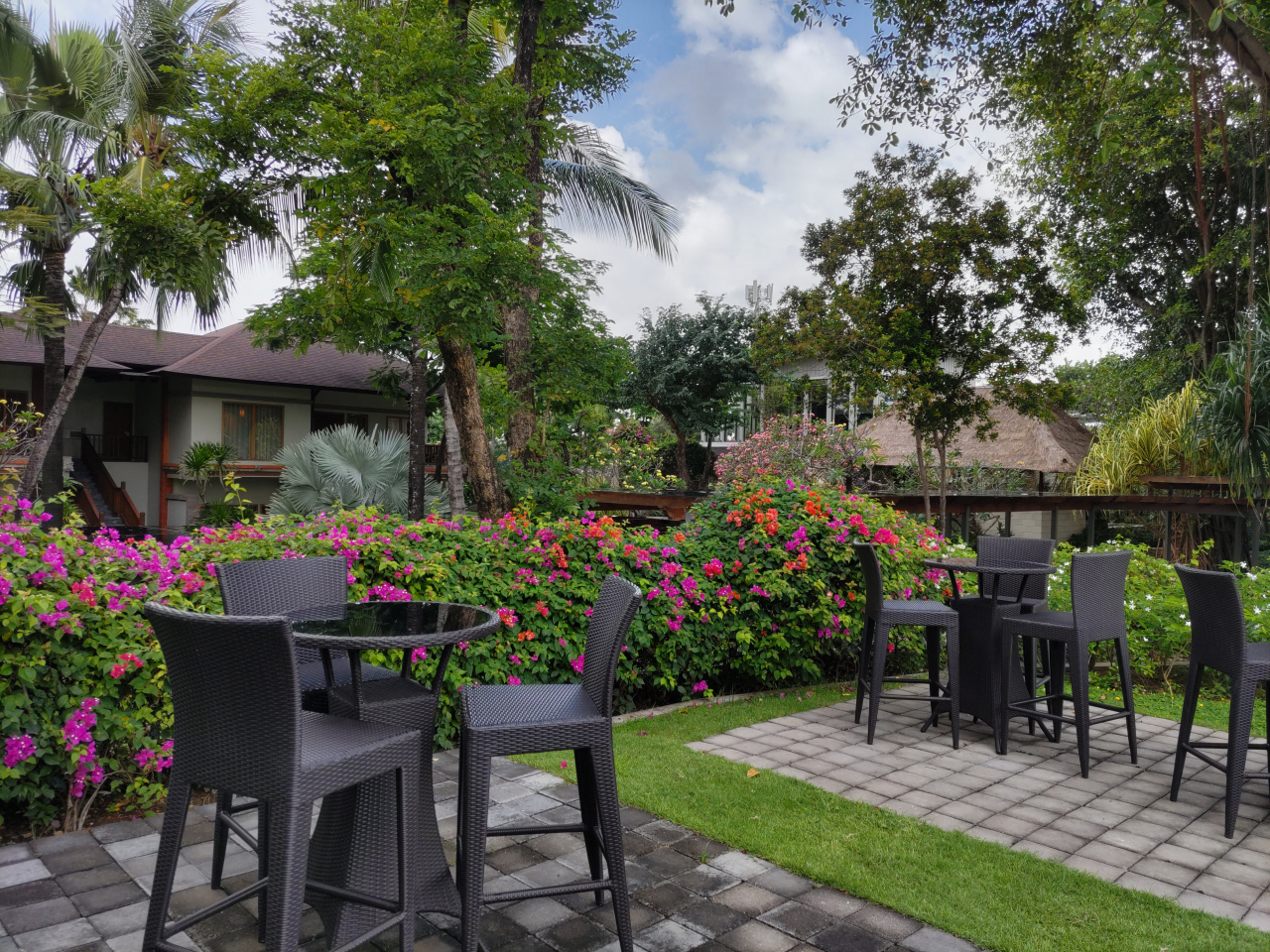 レギャン・ビーチへはホテルから通りを徒歩で渡ってすぐの場所にありますが、ホテル専用のビーチというわけではありません。ビーチ沿いにはホテルとは関係ない海の家なども立ち並んでいます。