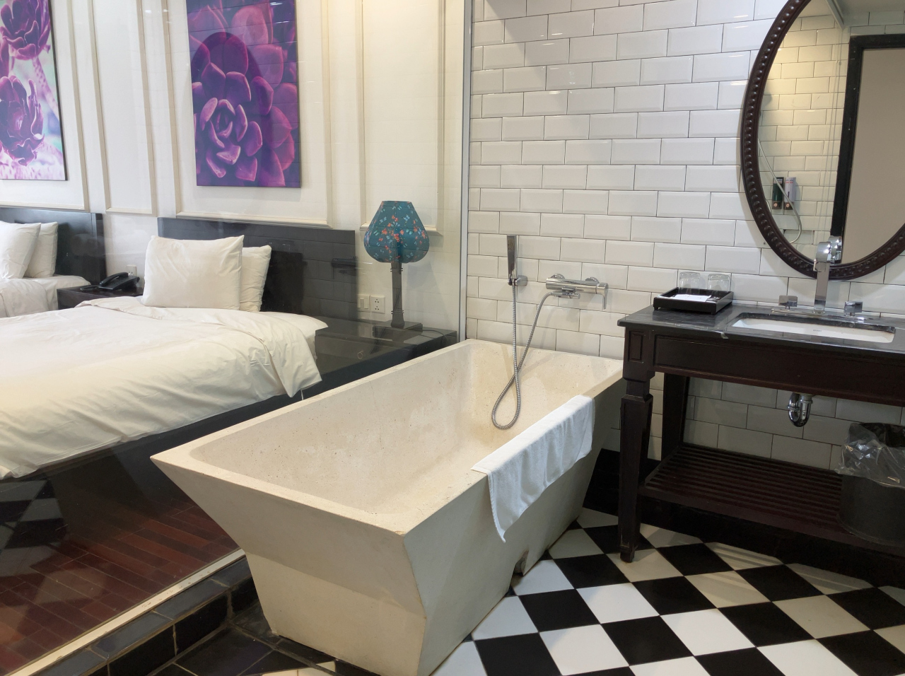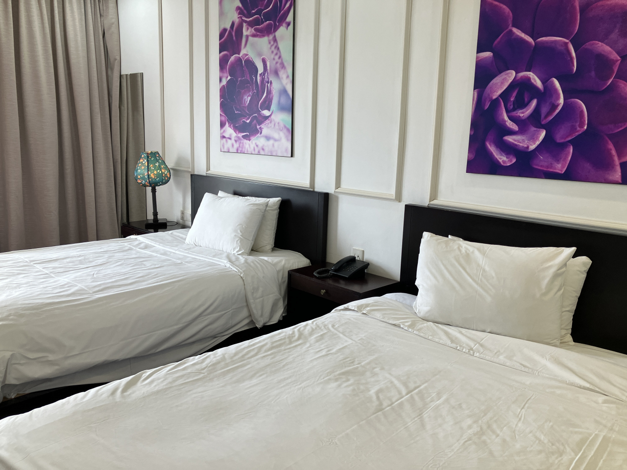 リバーサイドという名のホテルですが、ホイアンの写真で見るようなランタンが見られる場所に建っているわけではなく、旧市街の賑やかな場所から少し離れているので、静かです。大きなホテルなので、団体のお客さんが多い時があります。そうなると、ちょっと騒がしいです。お部屋は広くて、ベランダがあります。ホテルの周りにはレストランやマッサージもありますし、歩いて10分程でランタンがキレイな旧市街に行けますよ。