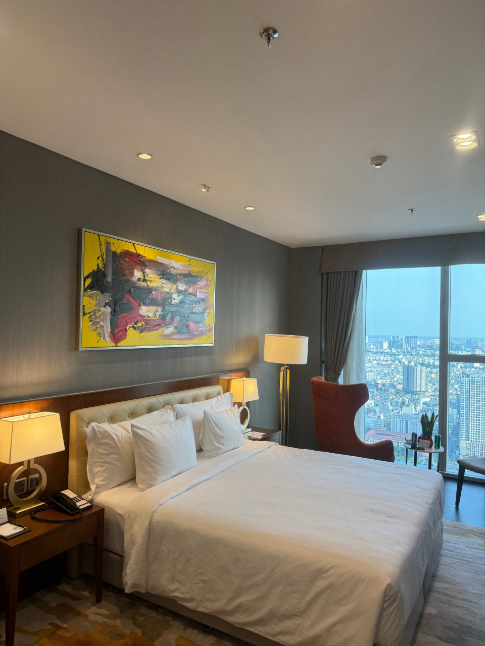 ホーチミンの市内中心地に位置し高島屋が下にありホテルが併設されている。チェックインを行う階は解放感がありホテルのラグジュアリーさを感じられる環境でした。
