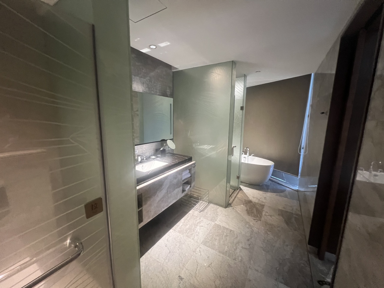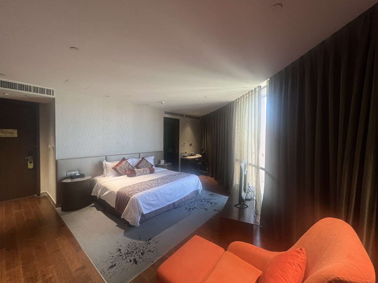 温泉目的に宿泊。浴槽付きの部屋にしたら角部屋で市内の景観も素晴らしかった。インテリアに高級感がありとても寛げる。室内屋外ともプールがあり、温泉花園は別料金だが、セットプランで宿泊すればさほどでもない。温泉公園は様々な温度や薬効の湯があり水着で性別問わず楽しめるし併設のウォーターパークも子供は喜びそう。ホテル内には全く市価と同じ値段のコンビニやお土産物店もあり便利だった。朝食やルームサービスも美味しい。