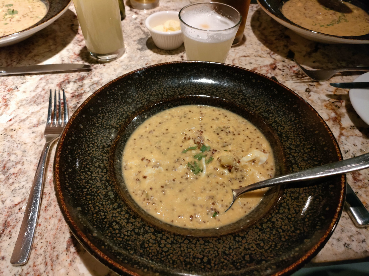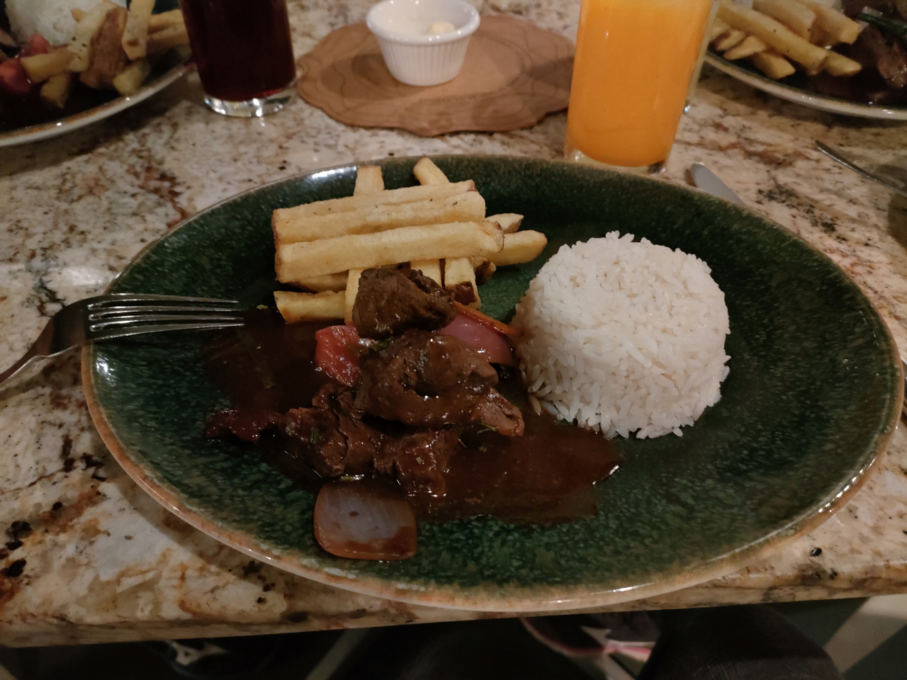 エル・マピに2泊しました。食事は、鮭や牛肉などが出ました。鮭は美味しかったのですが、牛肉はちょっと硬かったです。キヌアのスープが美味しかったです。パパイヤのジュースは薄くて美味しくありませんでした。2拍目には、ペルーで人気の「ピスコサワー」を飲んでみました。ぶどうの蒸留酒に卵白が入ったサワーです。40度ぐらいあるらしく、口当たりが良いですがとても強くて全部飲めませんでした。味はとても美味しいです。