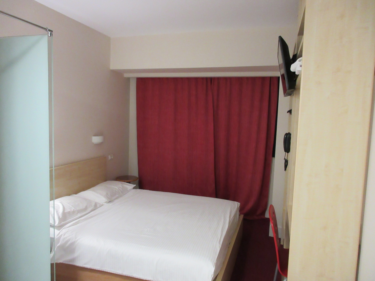 客室はいたって普通で機能的な造りです。ただ難点はシャワールームで、ガラスの扉が十分にしまらないため、シャワーを浴びて外に出ると客室の床面一部が水浸しになっていました。それ以外は短期滞在する場合には全く問題は無いと思います。
