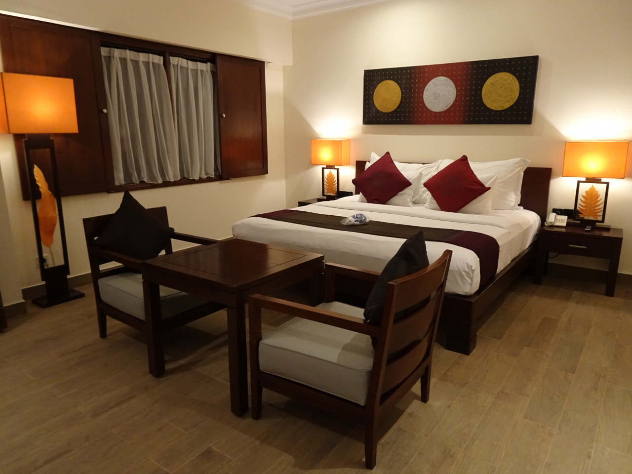 部屋はデラックスルームで、あいにく海側の部屋ではありませんでしたが、とても広く、落ち着いた色の内装。
