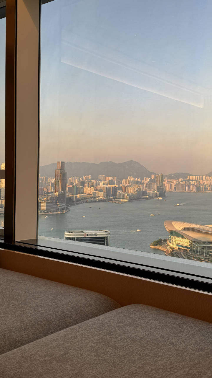 客室も香港では異例の広さ。クラブフロアのビューは文句なしで、いかにも香港という美しい景色を堪能できます。バスソルトも複数種類用意されています。館内は優雅で広々としています。また、ロビー階上のなだ万近くにあるトイレも非常にきれいです。香港島の中でも乗り換えのしやすい駅の金鐘(アドミラルティ)駅の上にあるので、地下鉄を使ってどこに行くのも便利です。また、香港島内だけでなく、九龍方面にいくバス、深圳に行くバスも近場に乗り場があります。