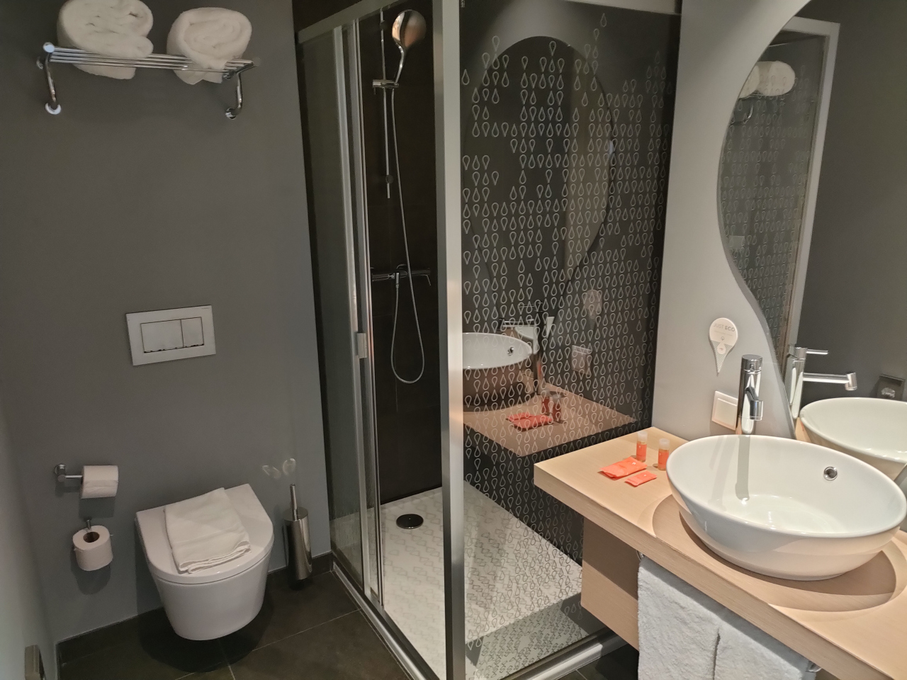 ポルトの地下鉄Trindade駅から徒歩約10分の便利なところにあります。ポルトは坂の街、ドゥエロ川に向かって下がっていきます。Trindadeのあたりは坂のうえにあるので、坂を下りながら観光ができます。建物は目立たなくて、看板も小さいから見過ごして通り過ぎてしまいました。部屋は新しいのか、とてもきれいで清潔感があります。バスルームもきれいでした。飲食店は近くには少なくて、駅のあたりまで行かないとないので、少し不便かも知れません。じっくり探すと駅の裏側に出るバイパスもありました。