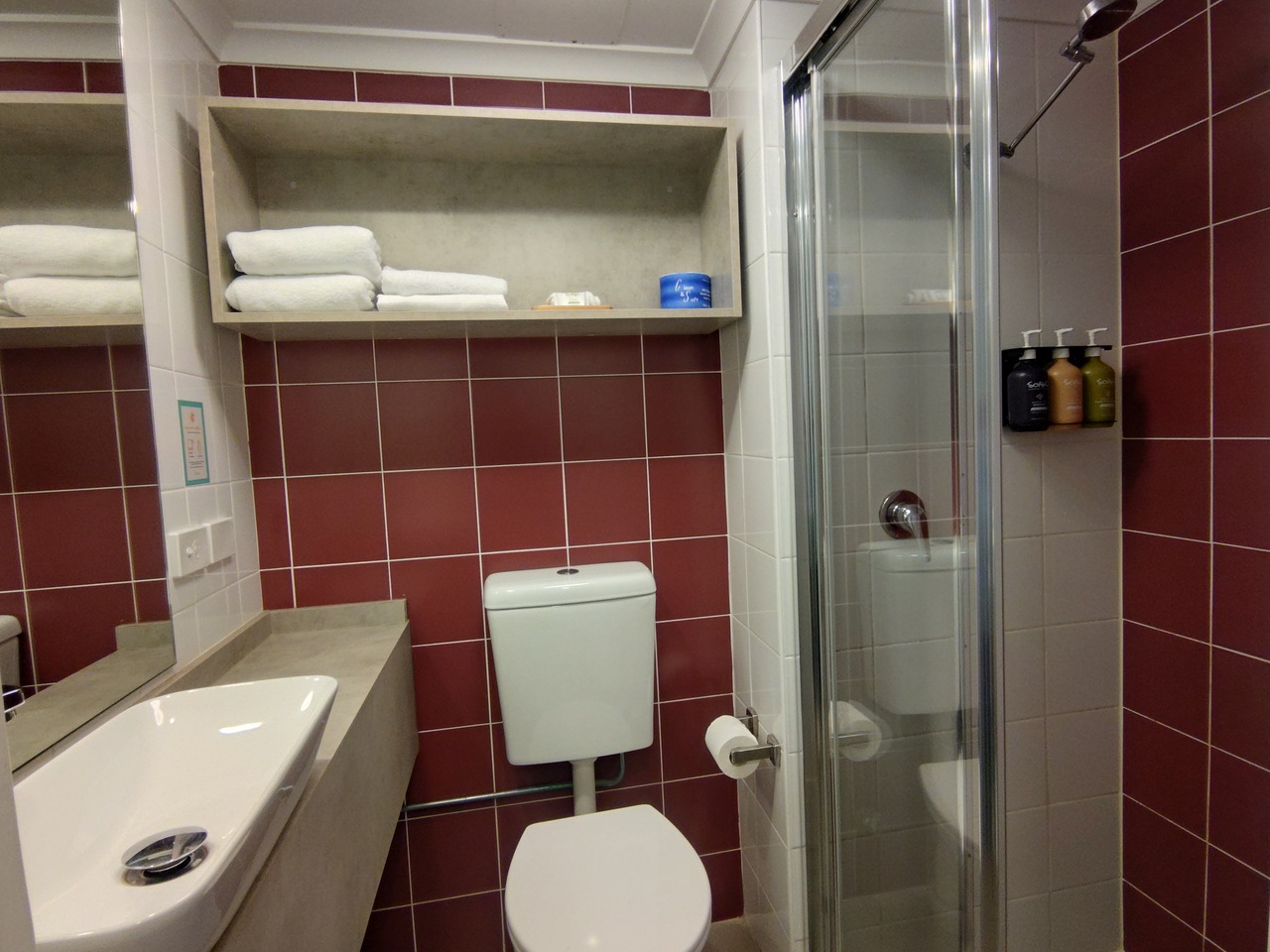 バスルームも狭く洗面台も小さいです。シャワーの温度と水圧は良かったのですが、排水が遅く水が溜まりました。下水臭はありませんでした。