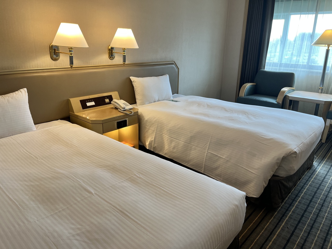 ツインルームに宿泊。部屋は充分過ぎる広さがあり、テレビや家具も新しいが、バスルームは古めだが、汚いわけではないので問題なし。歯ブラシ等の提供はなくなったが、歯間ブラシ(糸ようじ)と綿棒があったのは嬉しい限り。水も一人2本ずつあるなど、4つ星ホテルらしいおもてなしは健在。ほとんどのスタッフが日本語堪能なので、トラブルが起きても大きな問題は無い。