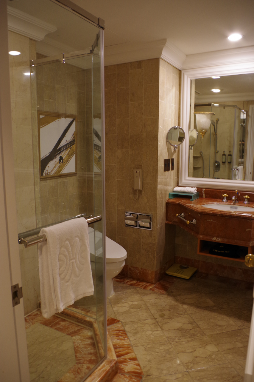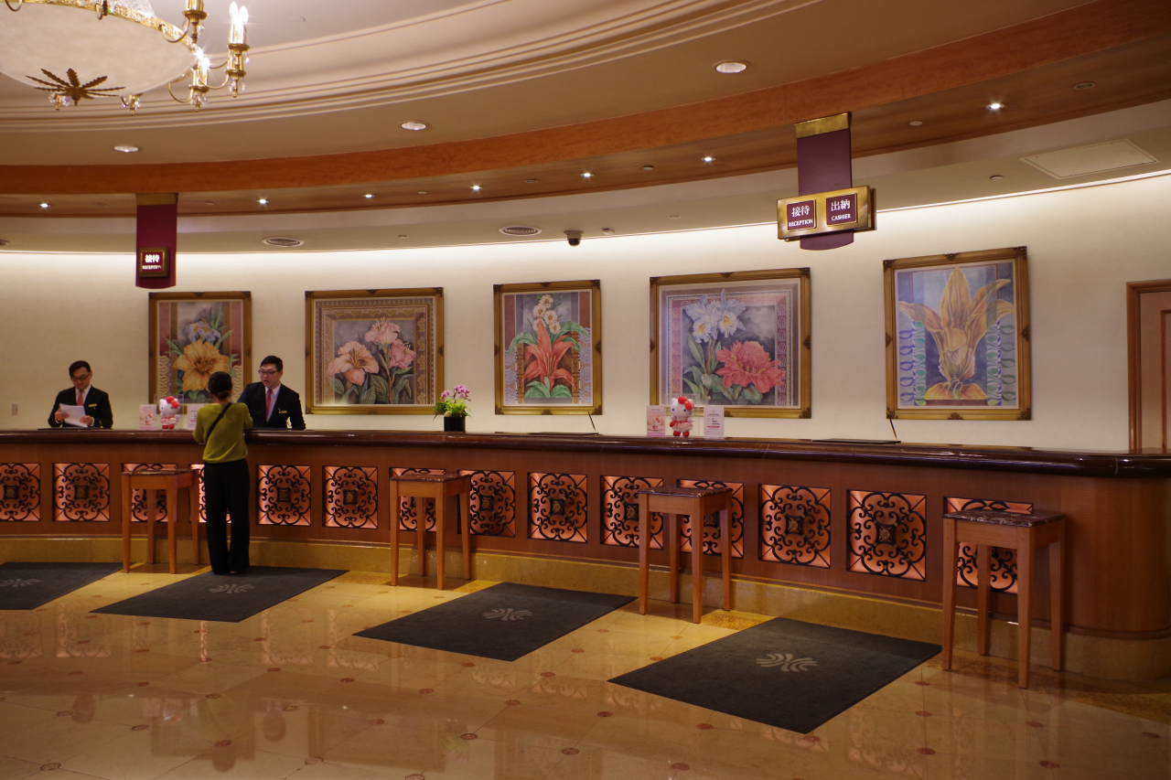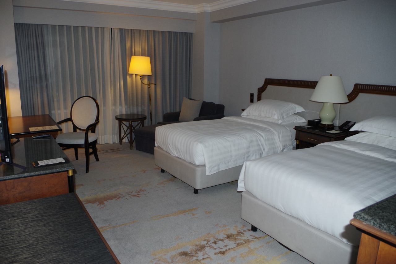 夜になると金色に輝いて目立つホテルです。朝食会場が最上階なので、ベイ・ビューの部屋でなくとも、景色を楽しむことが出来ます。部屋は33㎡でゆったり広く、内装も綺麗で心地よく過ごせます。湯沸かしポットやミネラルウォーターがあり、茶器が高級感があり、お茶を淹れたくなります。地上階には百貨店が入っており、近くに地元のコンビニもあります。エレベーターはルームキーカードをかざして動く方式です。