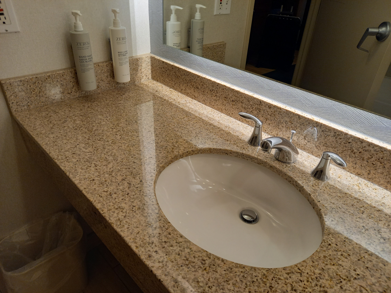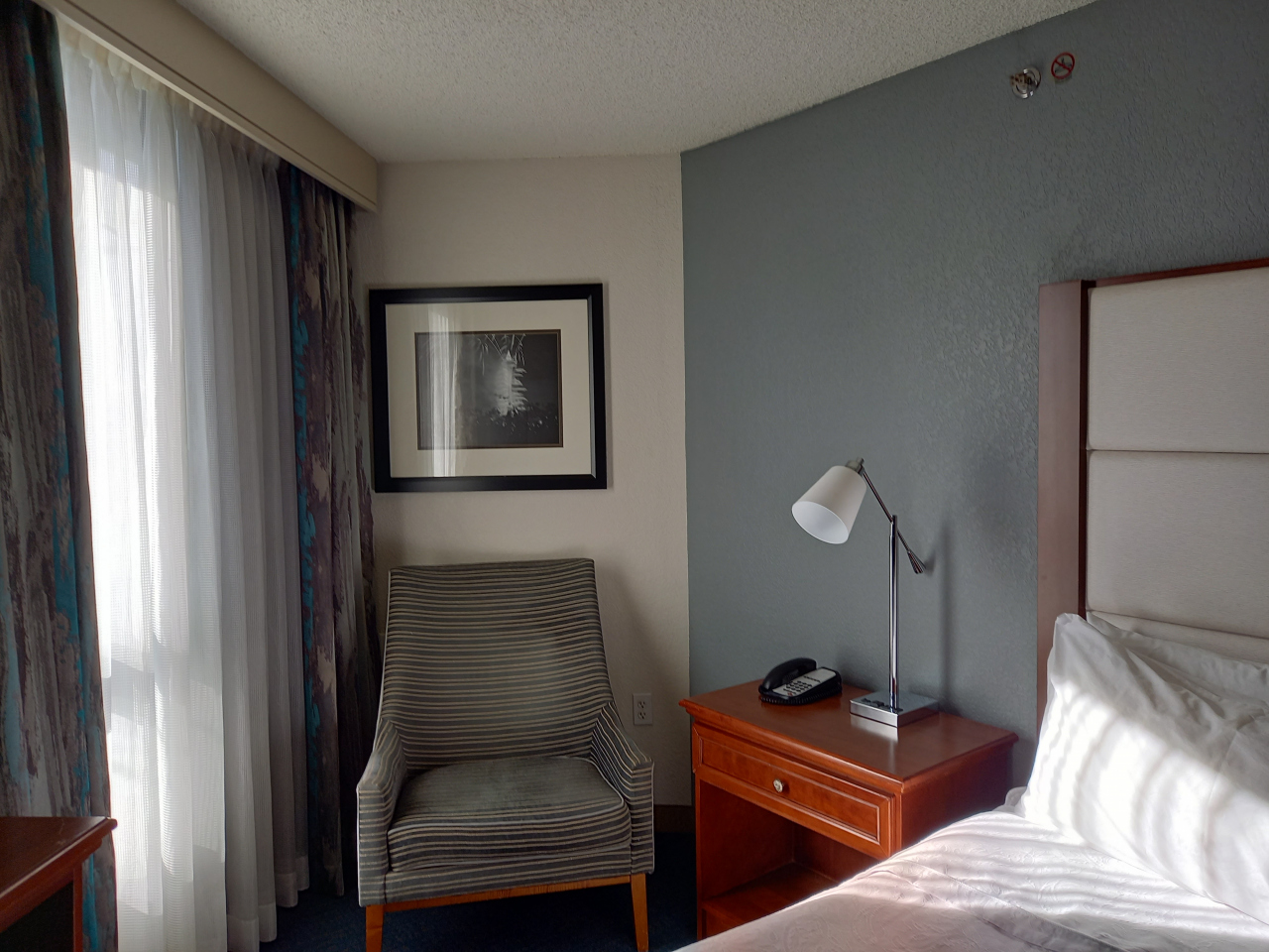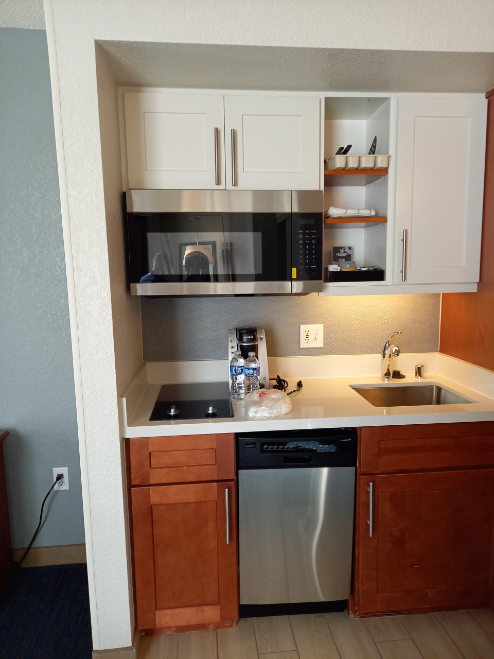 空港からタクシーでパイクプレイスの近くを通過しましたが混雑していました。周辺は静かな住宅地です。バス通りに面したお部屋で車の通過音が騒がしい時もありましたが激しい交通量では無いので気にはなりませんでした。キチネットは充実していてコーヒーマシン(ネスプレッソ)や冷蔵庫(我が家のモノと同サイズか?)、電子レンジ、ディスポーザまで備わっていました。食器(カトラリーやお皿、ボウル等)やフライ返しなどのガジェットもありました。バスタブが部屋の広さに比べ貧弱で、見た目こそ大きいのですがお湯が少量でたまるような規格でイマイチでした。掃除もイマイチ。贅沢な言い方ですが「無駄に広い」「一泊だけではもったいない」ほど快適でした。朝食はシリアルなどが中心の軽食スタイル。クルーズターミナルへのシャトルバンサービス(有料:10ドル/人)がありましたので大変、助かりました。