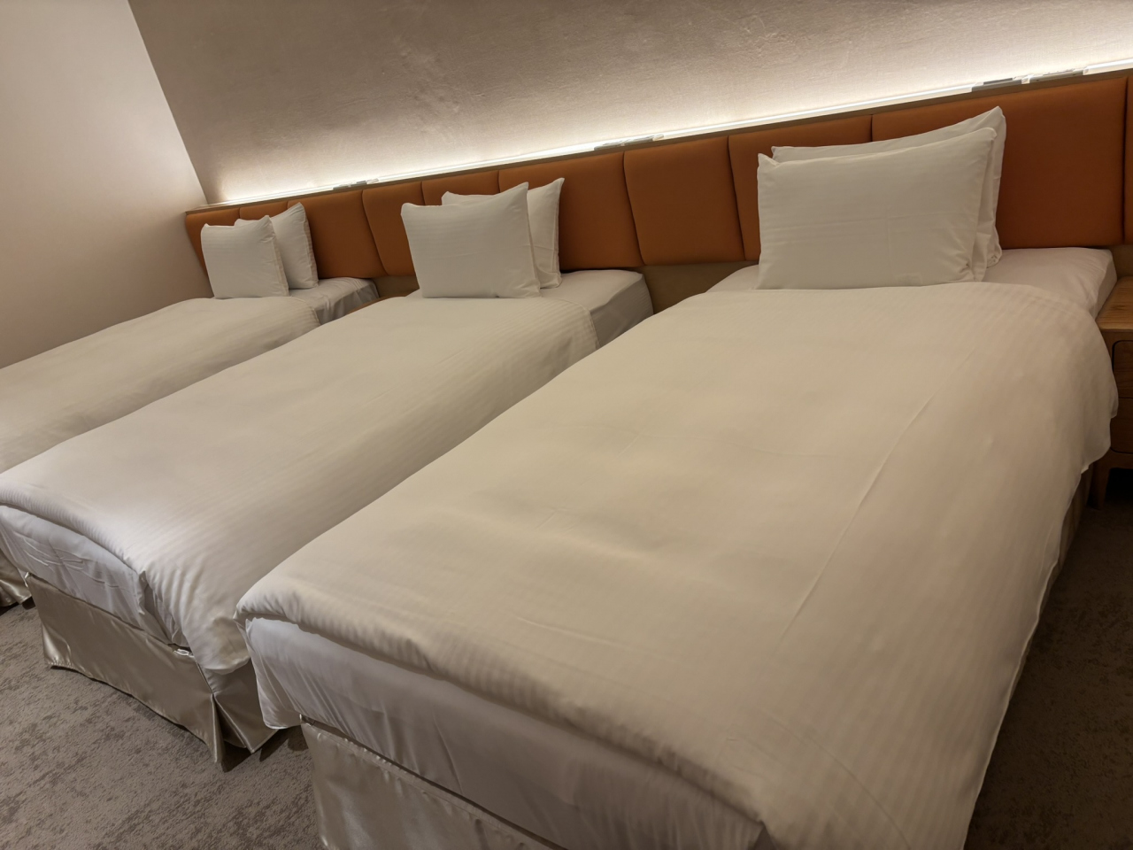 客室はトリプルでシングルベッドが三つのお部屋でした。